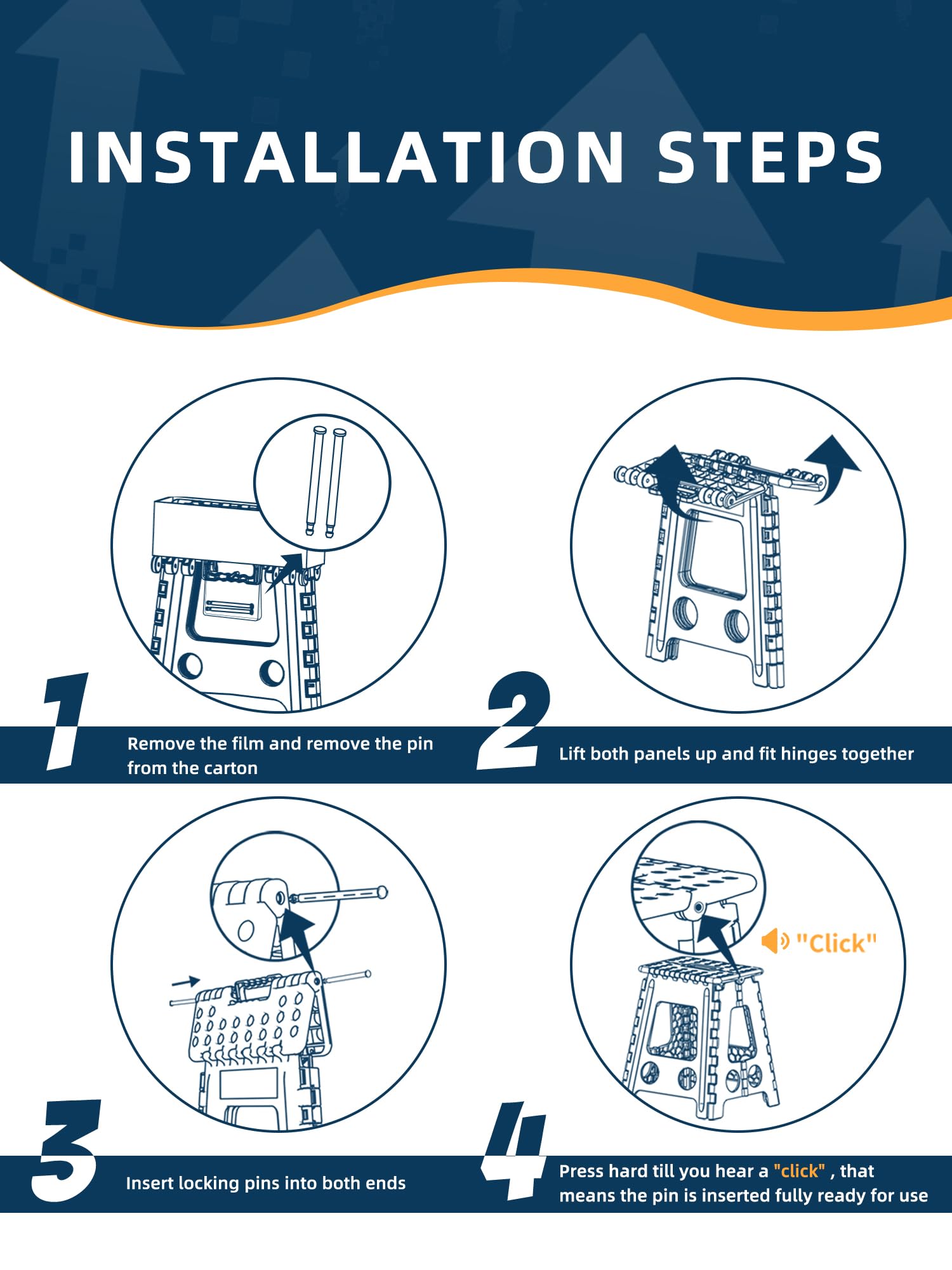 ["Multi-Scenario Use"] The foldable step stool is suitable for a variety of scenarios: Whether you use the foldable step stool at home for easy access to things, changing shoes, or camping or picnicking, the foldable step stool is the ideal choice. At the same time, the folding stool can also be used in offices, schools, parks, and other places to solve the problem of inconvenient access to high places or seating.