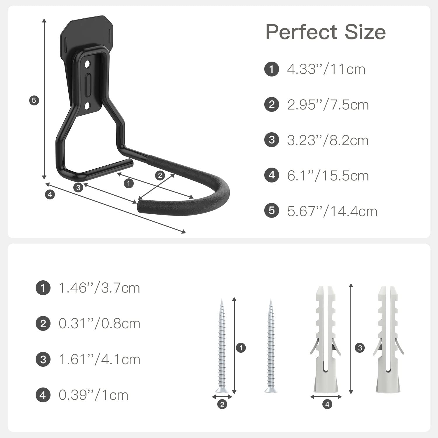 "TOP QUALITY MATERIAL: The bike rack is made of sturdy iron. It has a durable construction with excellent load capacity. It can carry bikes up to 77 lbs/35 kg. It is suitable for heavy bike use. Note: To ensure load capacity, it is recommended to mount it on a solid wall.