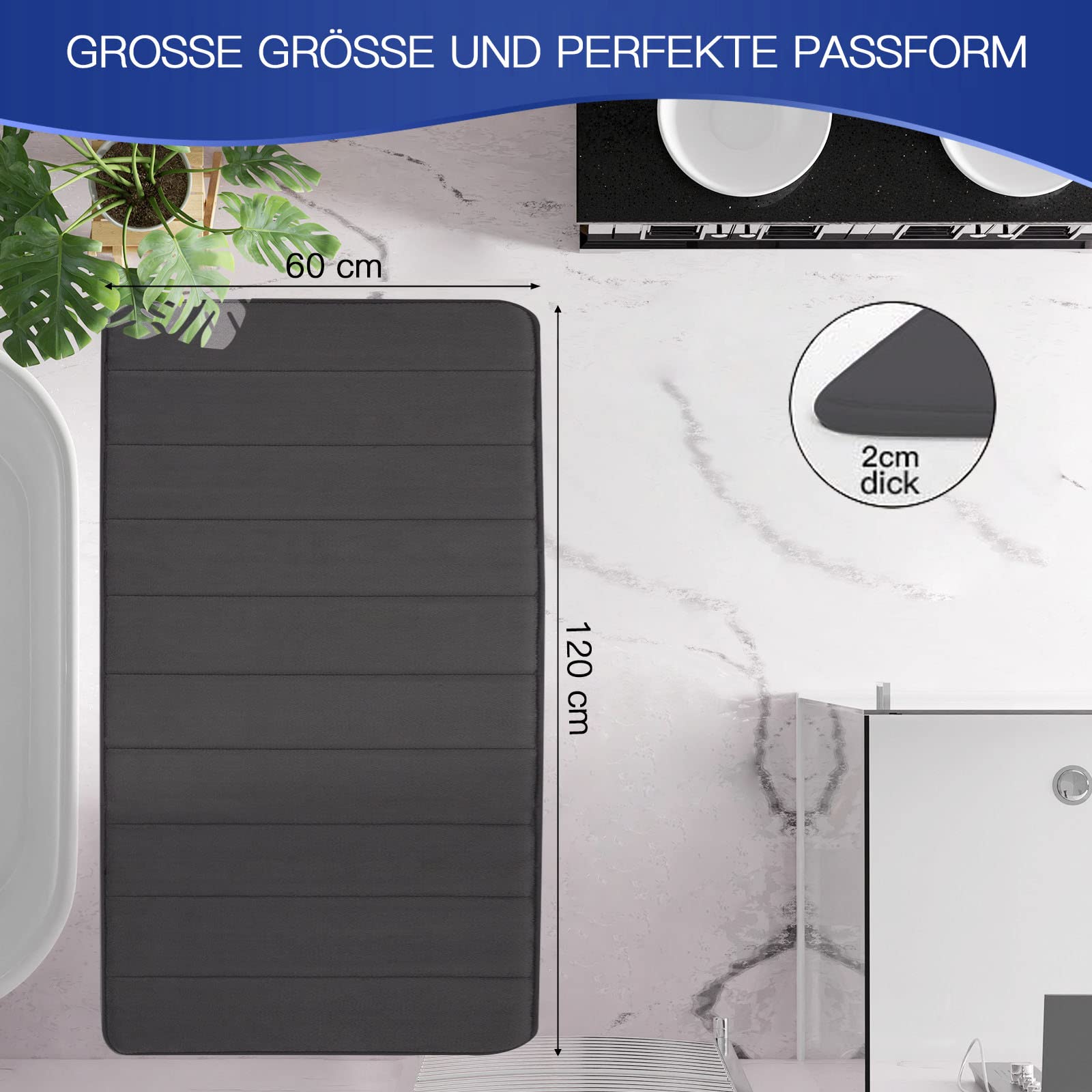 HOUYOMICS Non-Slip Bath Mat Large Bathroom Rug Extra Long Memory Foam Bath Mat Super Soft Absorbent Washable Floor Mat Bath Rug for Bathroom Living Room (Dark Grey, 60X120cm)