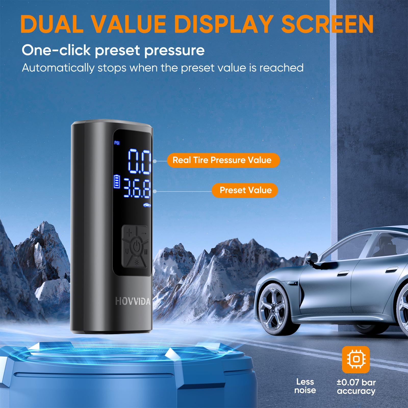 HOVVIDA Electric Air Pump Portable Bike Pump Electric Mini Tire Pump 150 PSI (10.3 Bar) 5V, Auto Shut-Off, 5200 mAh, LED, for Car, Motorcycle, Bike, Ball