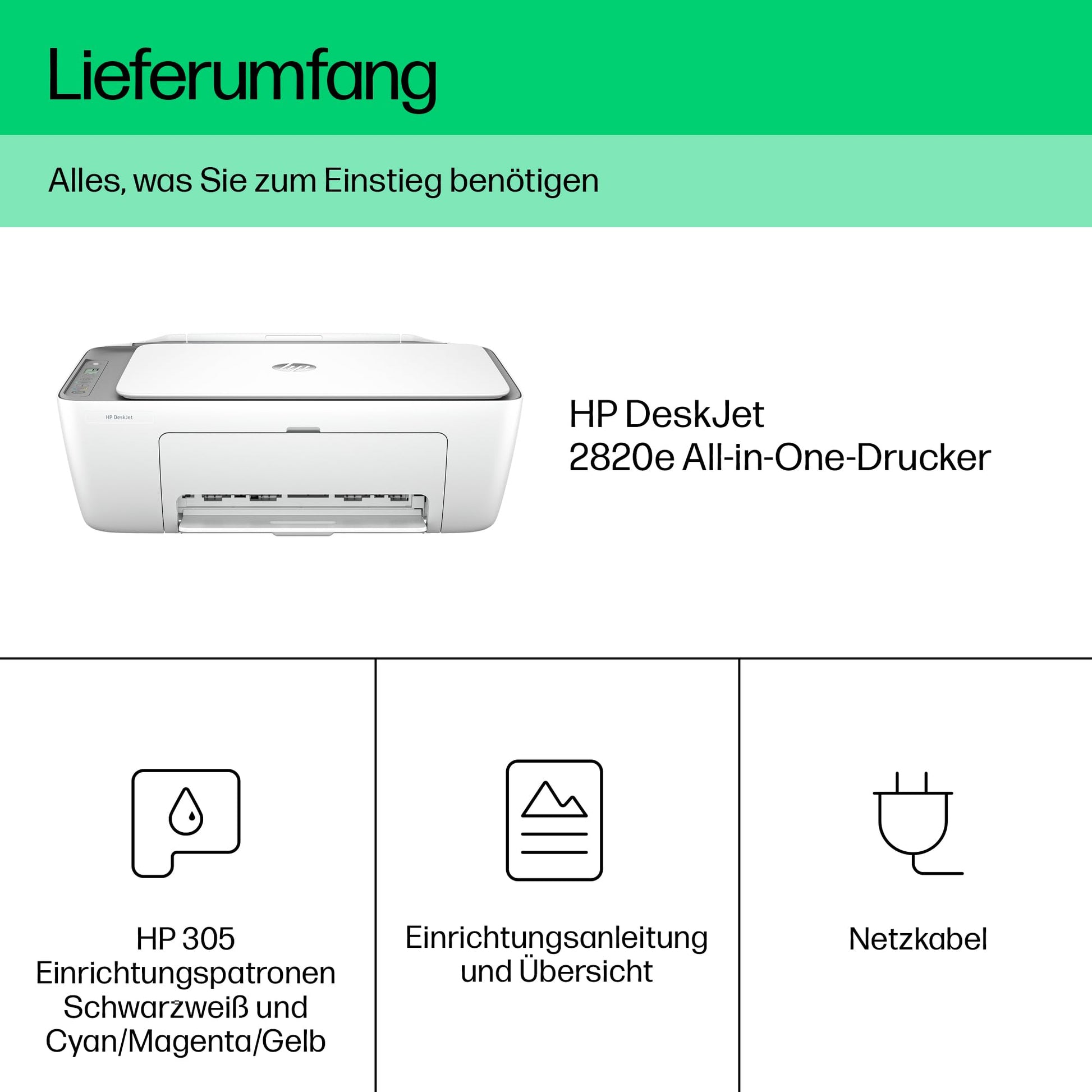 HP DeskJet 2820e all-in-one printer, 3 months of free printing with HP Instant Ink included, printer, scanner, copier, Wi-Fi.