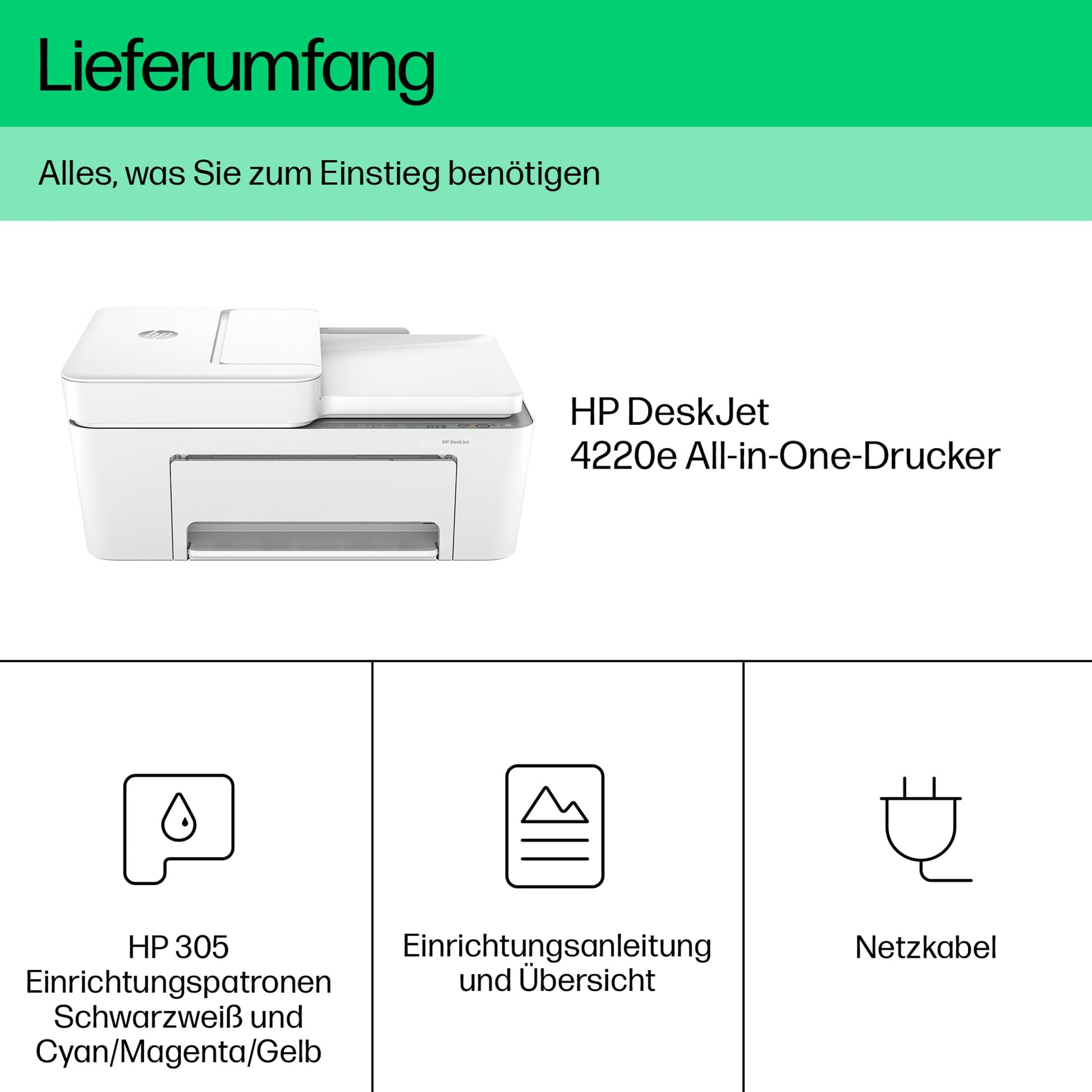 HP DeskJet 4220e All-in-One printer, 3 months free printing with HP Instant Ink included, HP+, printer, copier, scanner, mobile faxing, WiFi, automatic document feeder, White