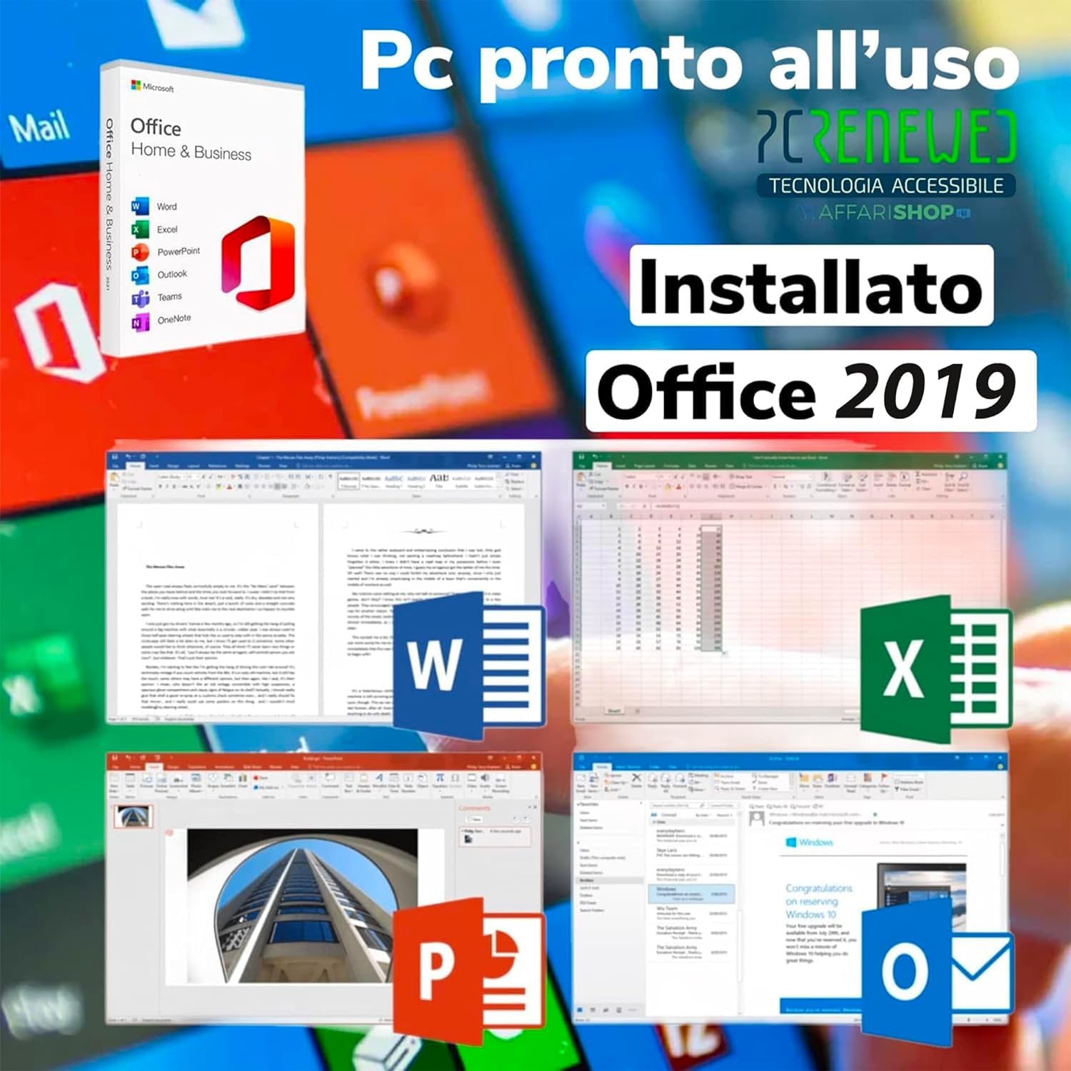"Windows 10 Professional 64 Bit installed with Coa license sticker (this sticker on the PC) + Microsoft Office 2019 Professional Plus installed with digital license (we recommend a system backup to avoid loss of the mentioned licenses)"