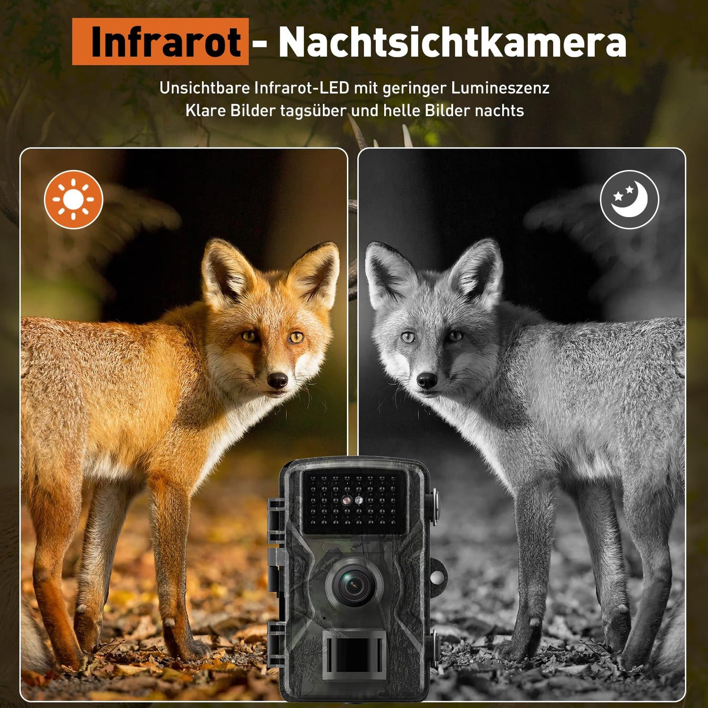 ["Ultra High Resolution: The wildlife camera can record 4K HD and 32 MP ultra high resolution for outstanding, vivid images and clear audible videos","Invisible No-Glow Night Vision: Invisible No-Glow night vision up to 24m, Thanks to 940nm infrared LEDs, the camera captures sharp images in complete darkness - without disturbing wildlife or humans","Excellent Detection Sensitivity & Good Sound Recording: The combination of 0.1-0.3 seconds fast trigger speed, 3 shot series, and adjustable motion-activated sensor allows for capturing more exciting moments","IP66 Waterproof: Ensuring normal operation from -20 °F to 70 °F, the tight structure, waterproof coating, and well-sealed rubber ring protect the trail camera from rain, snow, and dust. Don't worry about bad weather, the trail camera can also work well in harsh environments such as deserts, grasslands, and tropical rainforests","Super Easy to Use: The camera offers hybrid recording (photo and video), a 2.4-inch color screen, playback, timestamp, and password protection, as well as programmable operating times. Operates with an SD card and 8 AA batteries. (SD card and batteries not included)"]