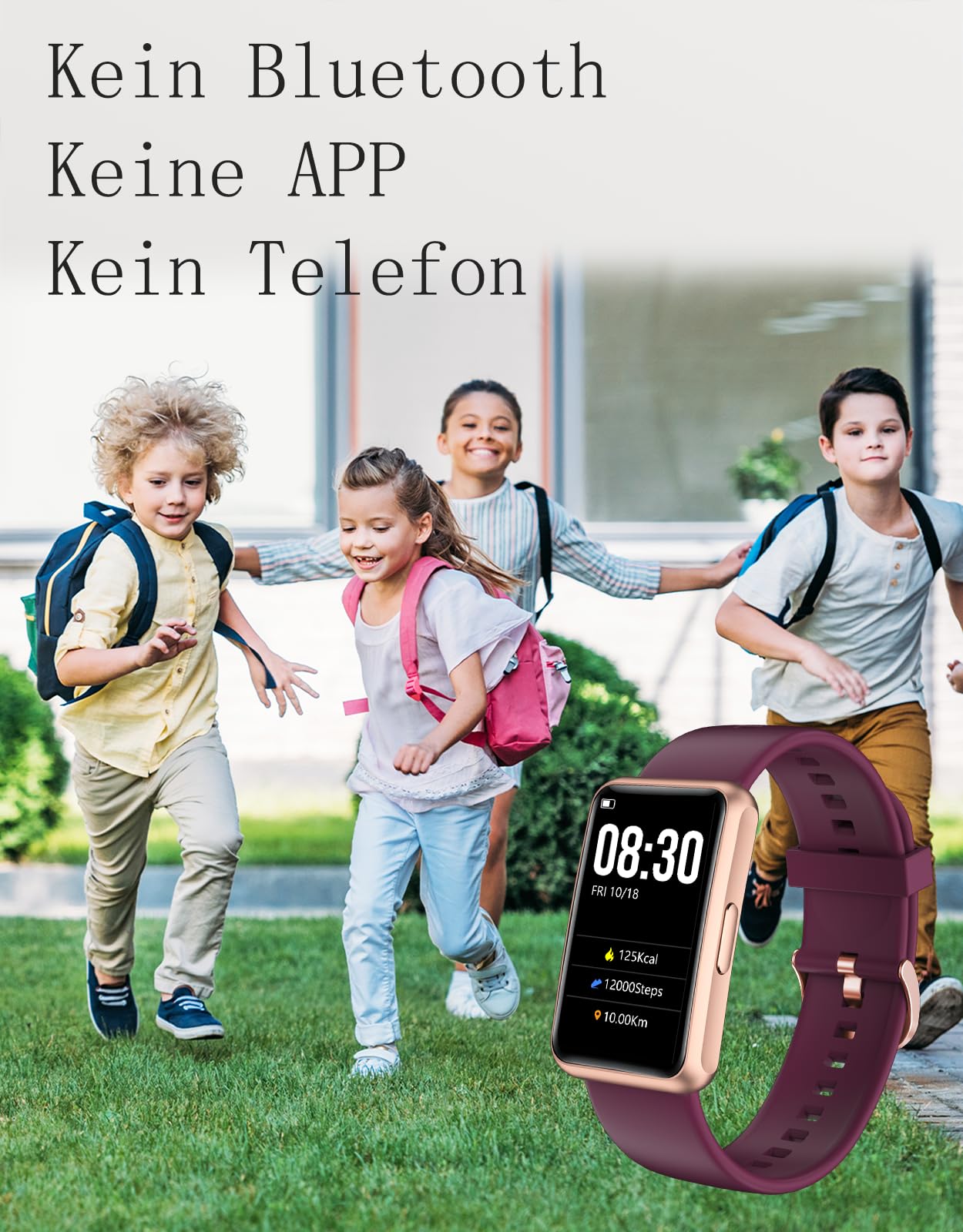 ["No Bluetooth, No App, No Smartphone – Just start】 This pedometer watch operates completely autonomously, without the need for a smartphone or app. Personal data can be entered directly on the watch, allowing you to start counting your steps immediately. Perfect for seniors, children, or anyone who likes simplicity – just put it on and get started!",