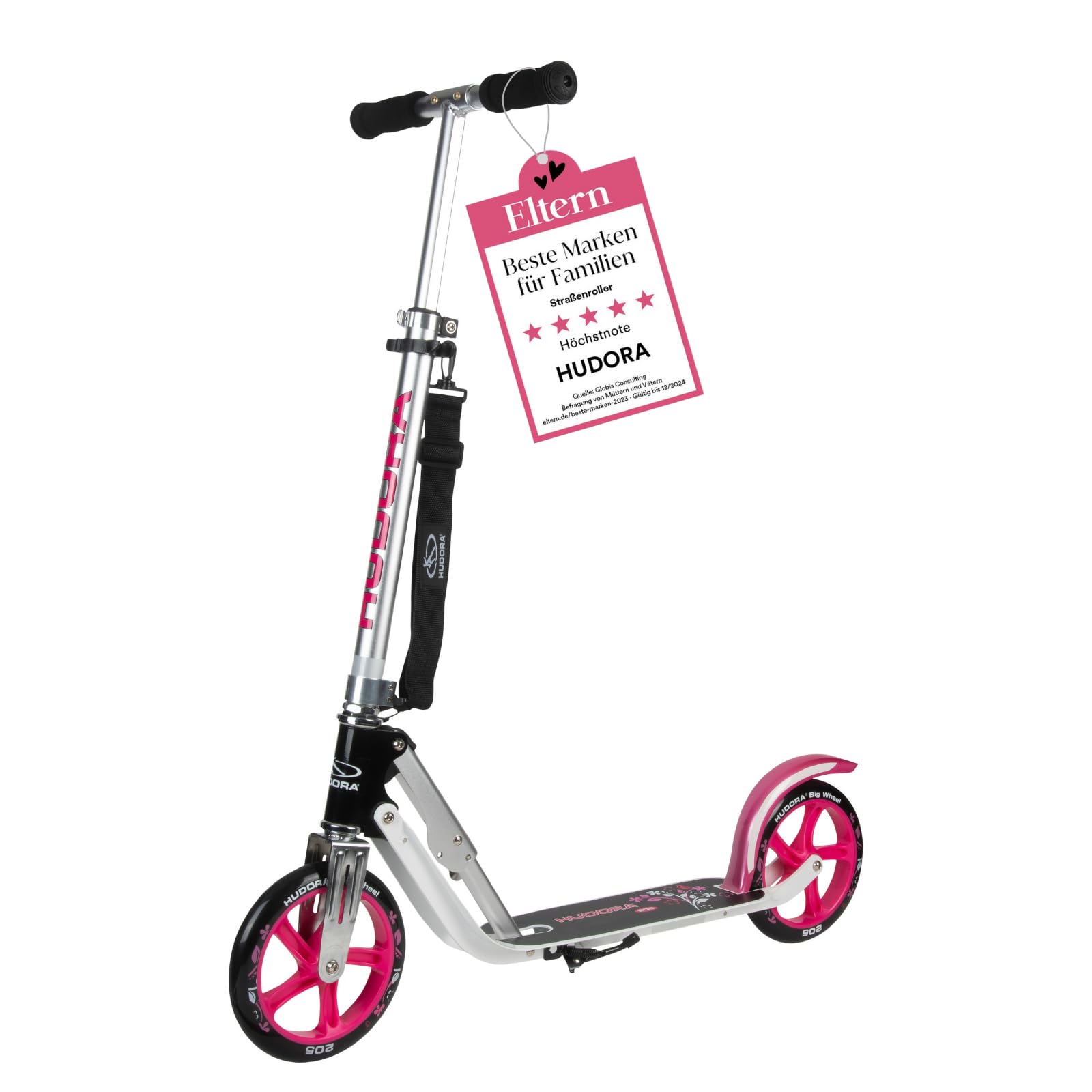 ["ADVENTUROUS - The scooter features fast 8-inch wheels & a low deck. Choose between classic or sporty rims for maximum fun!","PRODUCT HIGHLIGHTS - The grip tape, rear friction brake & reflectors ensure safe riding for young & old. The integrated mudguard protects the rider in the rain.","EASY TO HANDLE - The kick scooter weighs only 8.8 lbs due to high-quality aluminum & can be transported with the carrying strap. The folding mechanism allows quick folding of the scooter.","CUSTOMIZABLE - Available in many colors, the scooter is height-adjustable from 31-41 inches. With a weight capacity of up to 220 lbs, it can also be used by adults. All wear parts are replaceable.","HUDORA - This family-owned company, run for 4 generations, delights its customers with experience, trend sense & top quality. See for yourself!"]