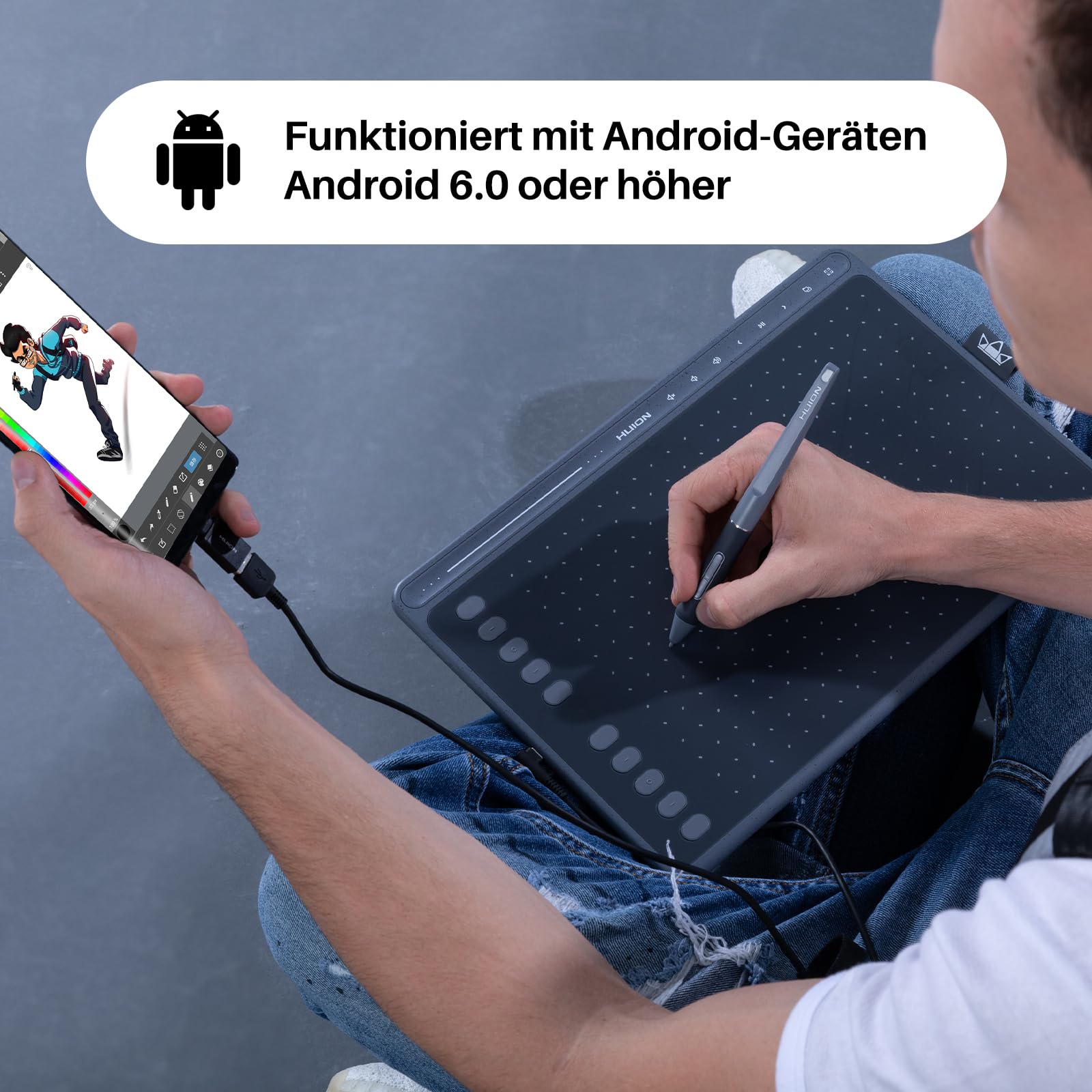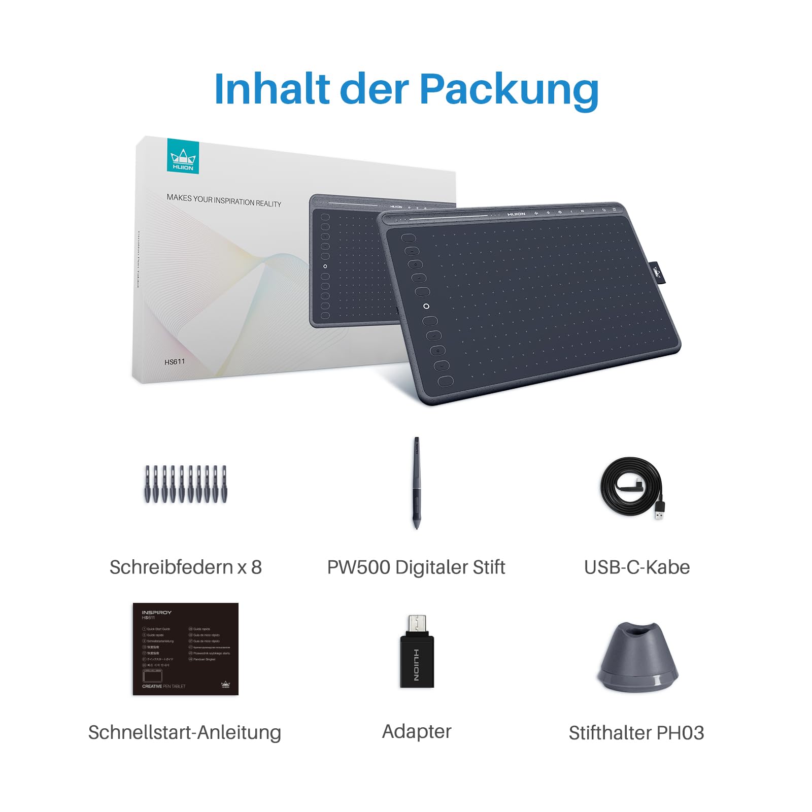 "In addition to Windows and MacOS, HS611 also supports Android like many other new Huion tablets. Additional features, including 8192 pen pressure levels, 266 PPS reporting rate, and a tablet thickness of 7.3mm for HS611, meet users' expectations for a professional pen tablet with competent performance and convenient portability. Get ready to be inspired by joy and color."]