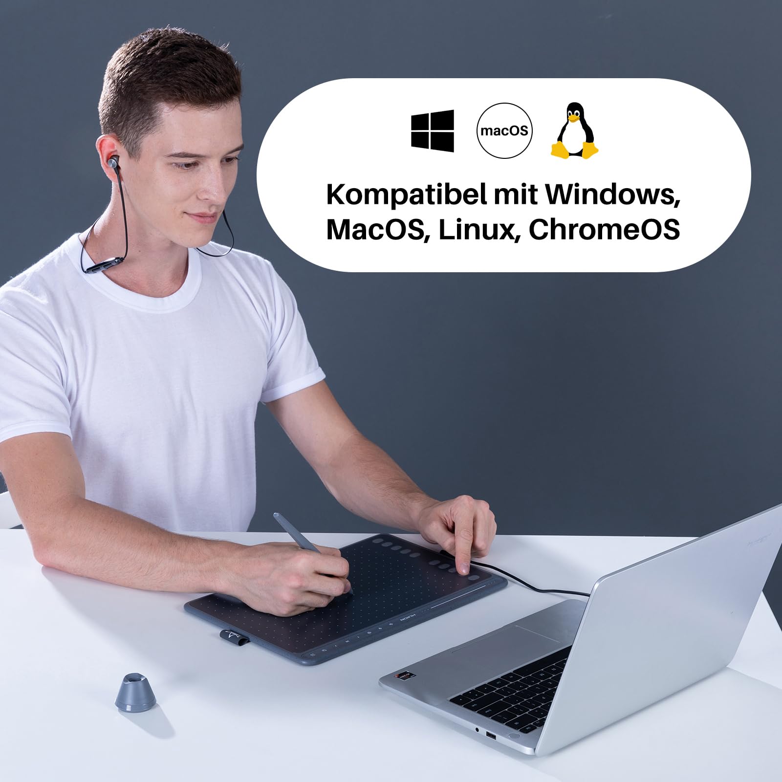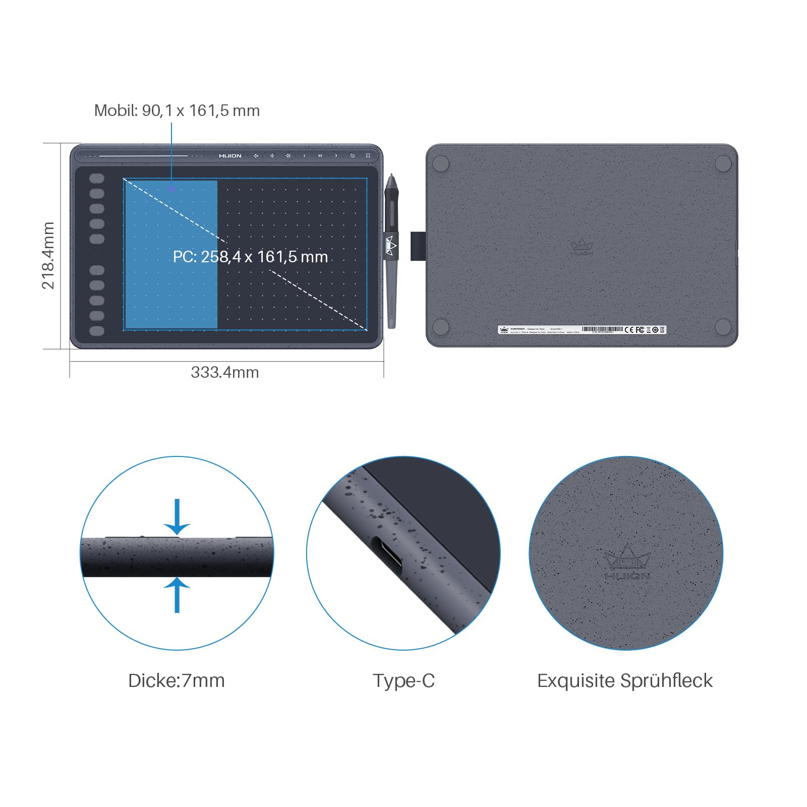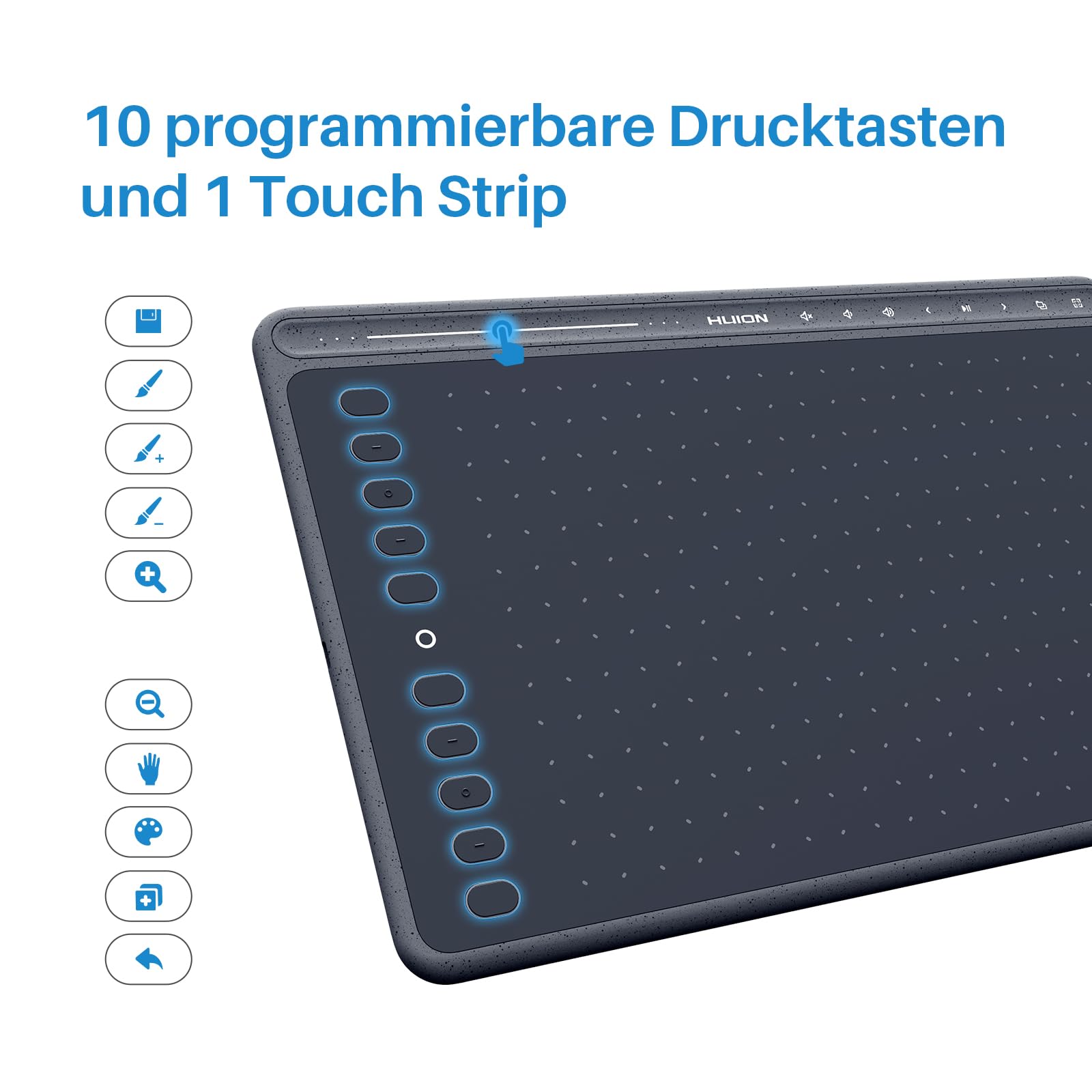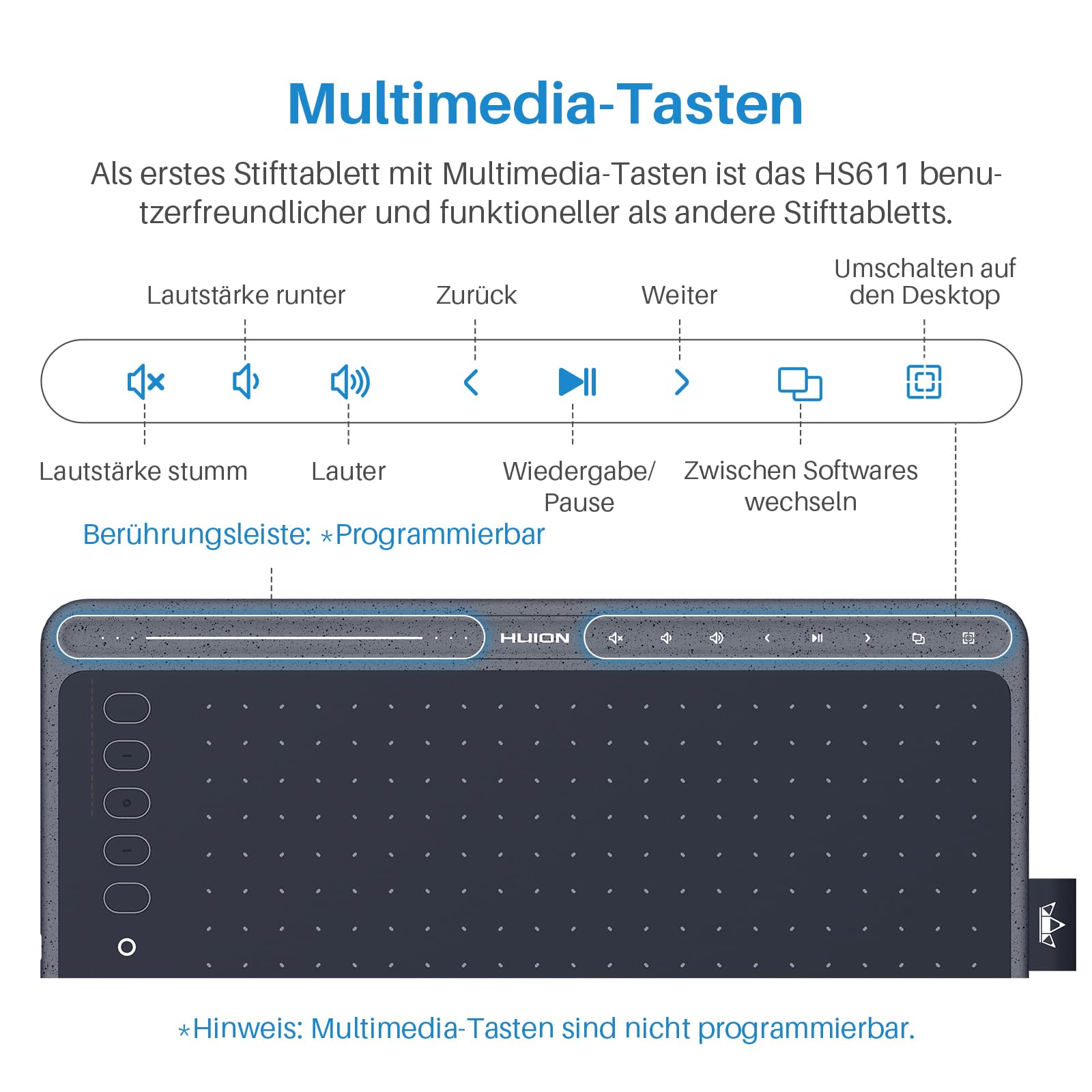 HUION HS611 Graphic Tablet, 10.2 x 6.36 inch Professional Drawing Tablet, Battery-free Digital PW500 Pen, Equipped with Multimedia Touch Keys, Adjustable Volume, Music Playback, Gray