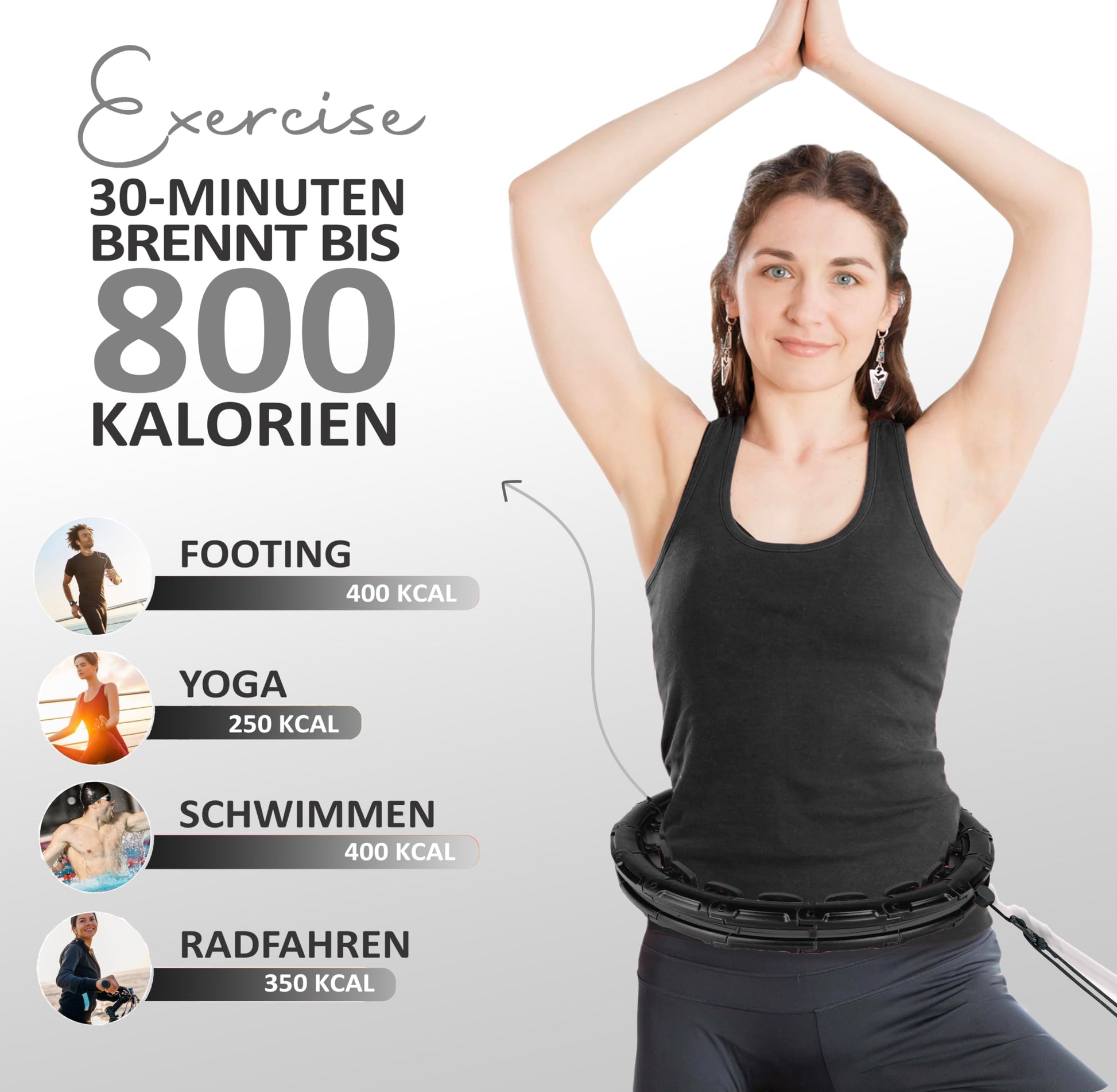 "✅ VERSATILE: The Hula Hoop for adults is ideal for fitness and massage. Supports quick fat burning and massages the waist, allowing you to relax after a long day of sitting. The Smart Hula Hoop for adults exercises your core, back, and waist muscles with a single workout.