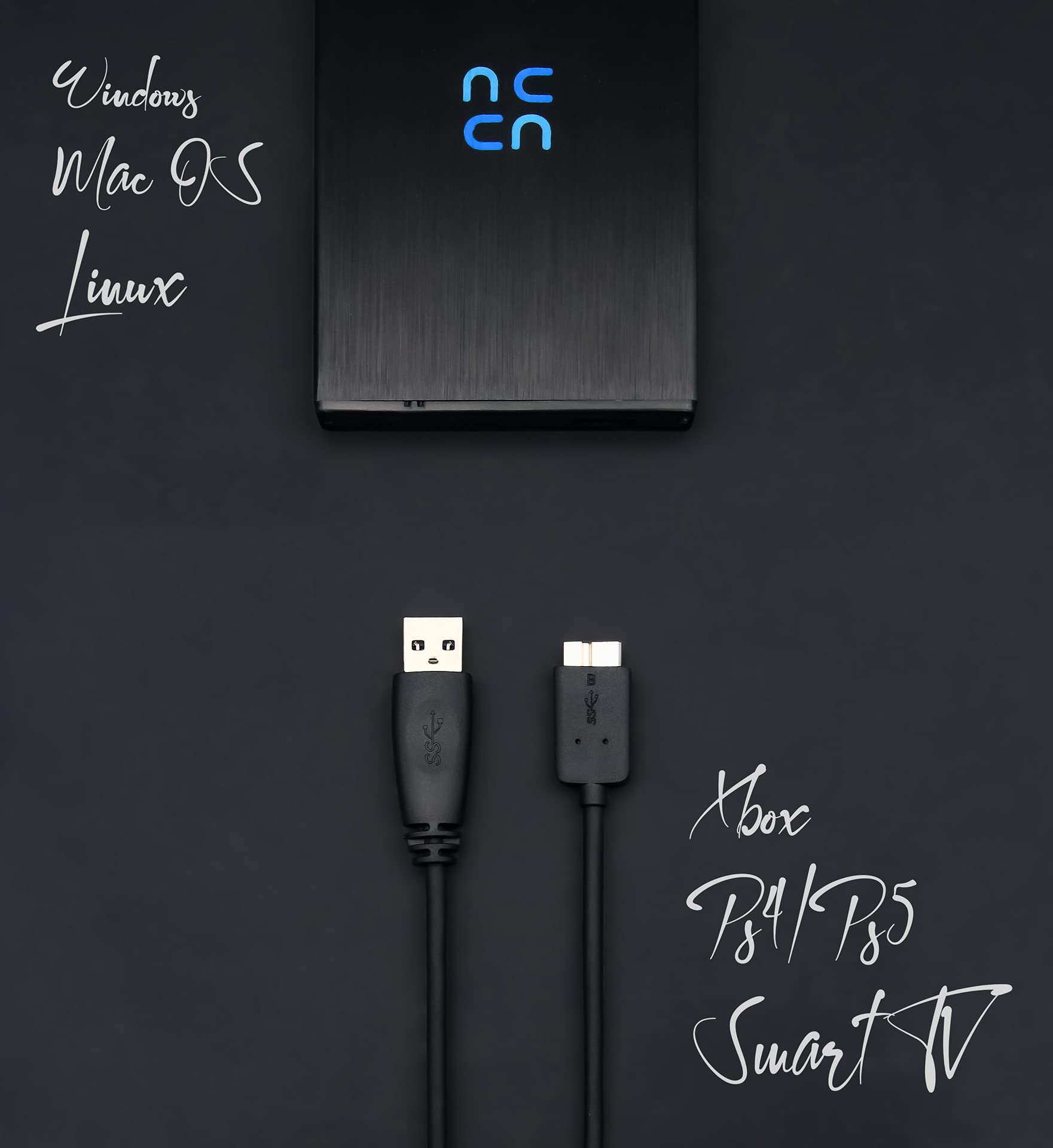 "Extensive compatibility: Plug and Play - No software installation. External hard drive for Windows, Mac, Linux, smart TV, PS4, PS5, Xbox.",