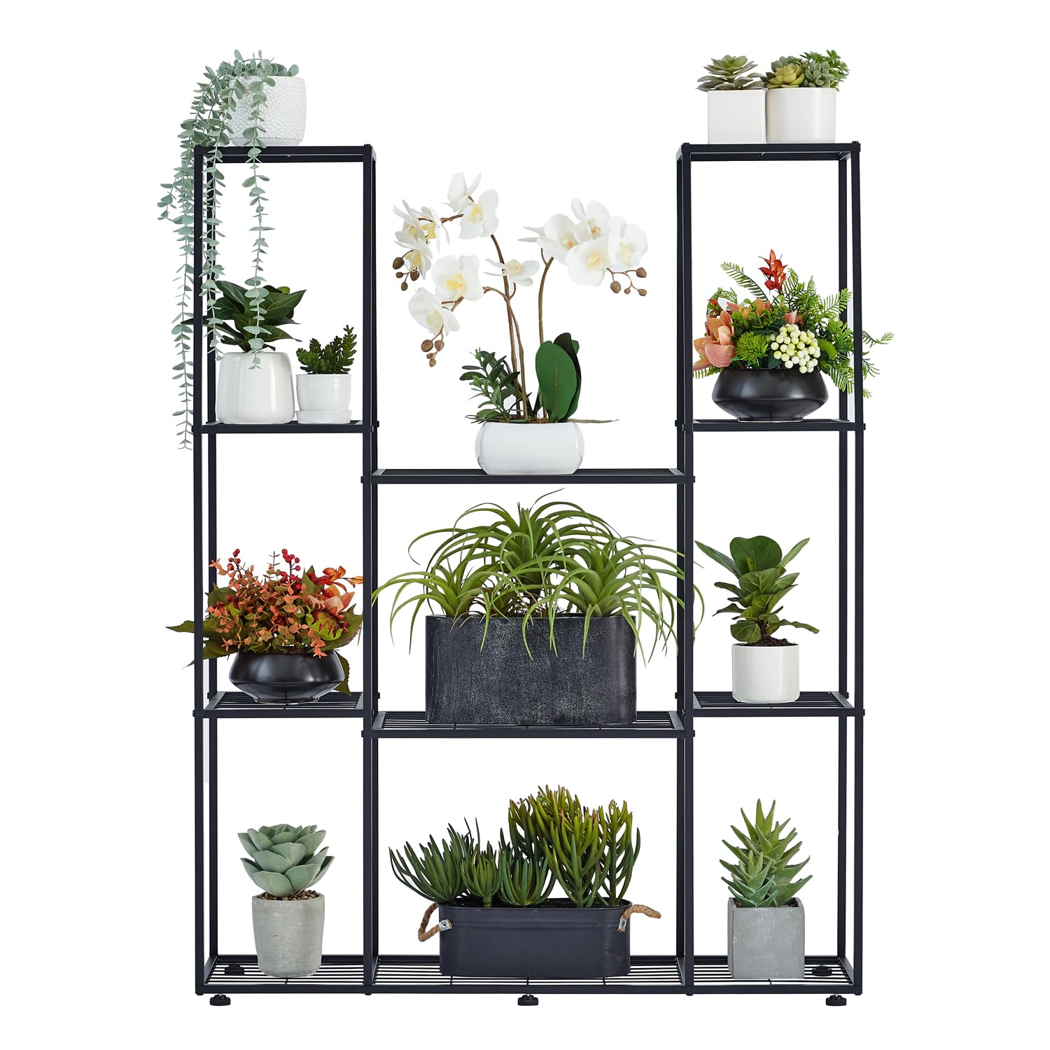 HUSFITLY metal flower rack, 4 tiers, 11 pots plant stand indoor outdoor, 120cm high waterproof flower stand, multi-tiered plant stand for garden balcony living room courtyard, black
