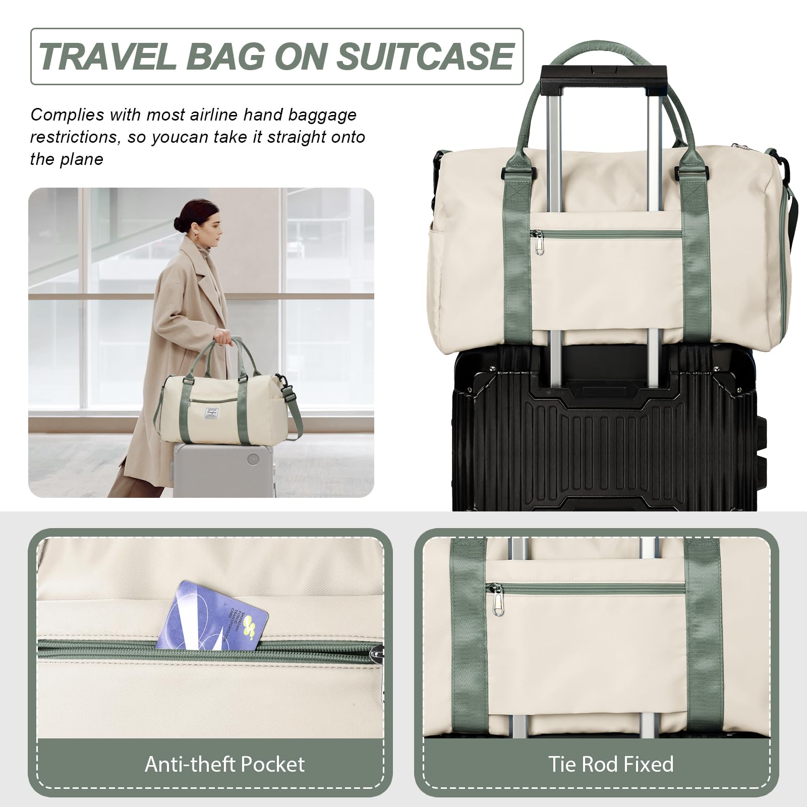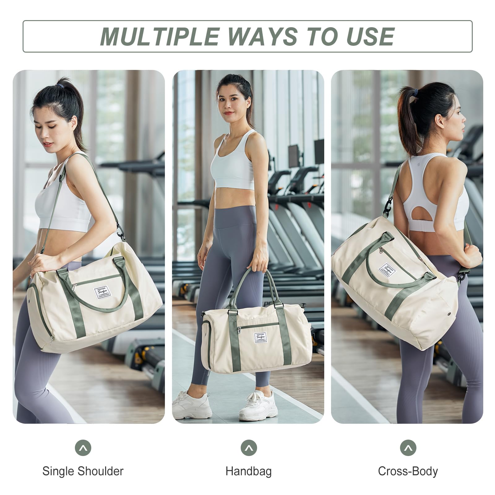 HYC00 Sport Duffel Bag for Men and Women, Gym Bag with Wet Pocket & Shoe Compartment, Travel Duffel Bags Overnight Bag Travel Bag Carry-on Bag Fitness Bag Workout Bag Weekender Bag, Beige Green