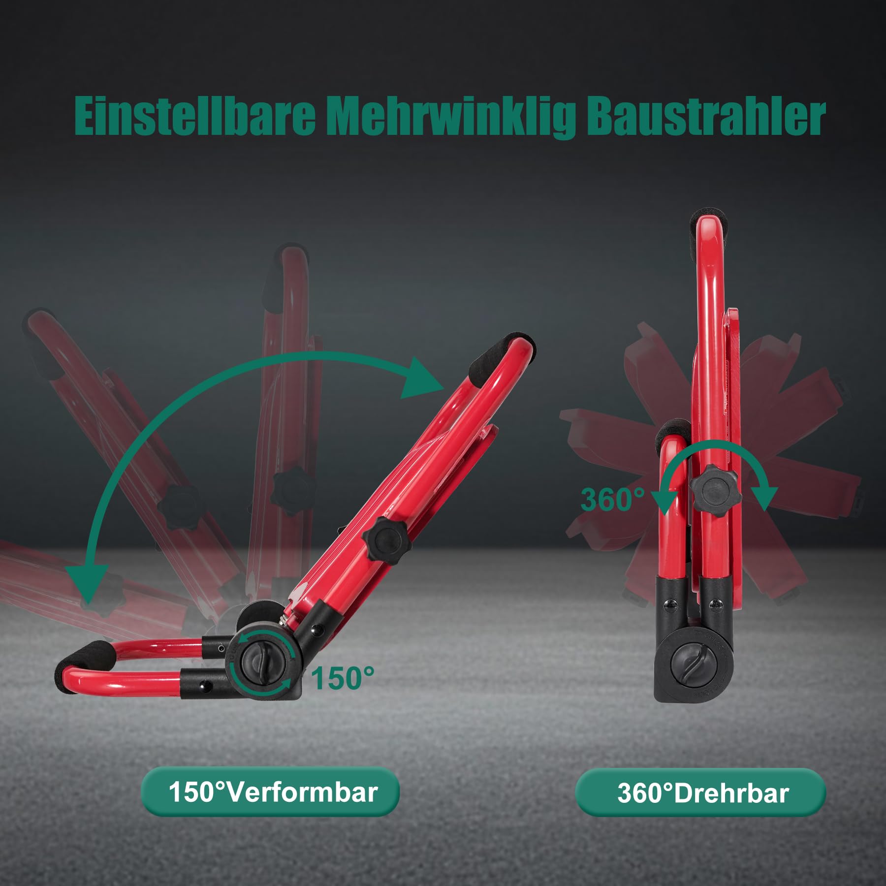 ["LED Floodlight: 50W LED Floodlight, Color Temperature: Cool White: 6000-6500K. Beam Angle: approx. 120°, Power Cable: 9.8ft. This professional construction spotlight is equipped with 70 highly efficient SMD lamp beads, which are brighter and more energy efficient than traditional halogen lamps with a lifespan of up to 50,000 hours. No radiation, no lead, mercury, and other environmentally polluting elements","Flexible design: The LED floodlight can rotate freely 360° and the bracket of the floodlight can be folded from 0° to 180°. When painting walls and ceilings, you can quickly adjust the desired angle at any time through the locking function on the bracket. After using this floodlight, you can fold it up for storage without taking up space","Excellent waterproof: The waterproof rating of this construction spotlight reaches IP65. The floodlight is made of high-quality aluminum and tempered glass, which has high heat conductivity. The silicone ensures a fully sealed structure with good waterproof performance. Can be used in rainy weather, cold/hot environments","Wide application: LED floodlights outdoor are ideal for playgrounds, gardens, buildings, squares, football stadiums, surrounding houses, theaters, playgrounds, and stadiums, etc. At the same time, you can benefit from a long lifespan of up to 50,000 hours. This is a very practical construction spotlight","3M Power Cable LED Floodlight: The newly upgraded 3-meter power cable is suitable for European standard sockets, which are longer than other power cables for construction lights. This construction light can be more widely used on construction sites","What you get: HYCHIKA 50W LED floodlight with folding bracket, User Manual x 1"]