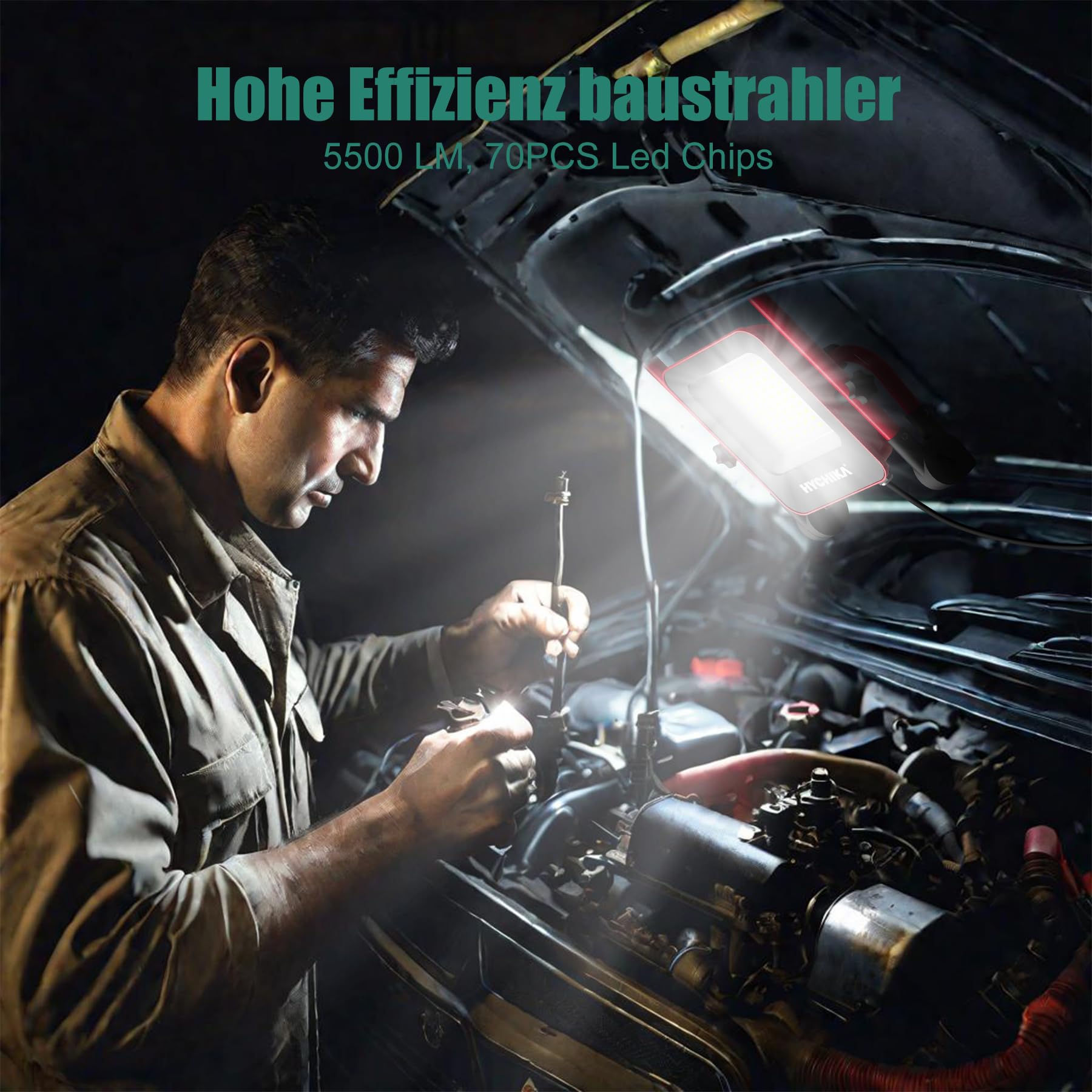 HYCHIKA LED construction spotlight, 50W 5500LM work light, LED work light with plug, IP65 waterproof construction spotlight LED with 3M cable, portable construction spotlight for workshop or construction site, garage, 6500K