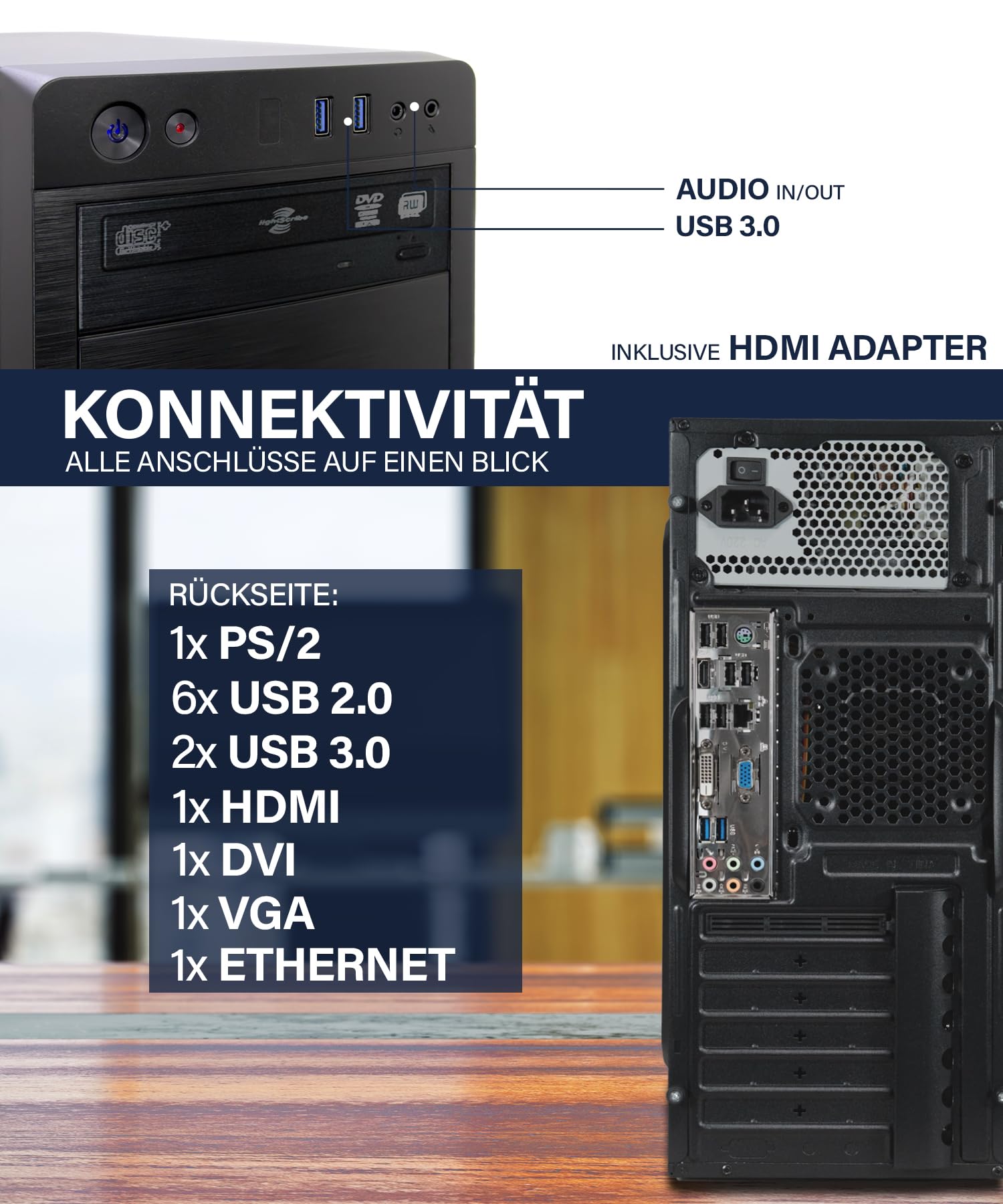 HYPER BYTE® Office PC - Computer with Intel Quad Core i7 at 3.9 GHz | 32GB RAM | 1TB SSD | Win 11 Pro | WLAN | DVD+RW | USB 3.0 | High End Office Tower-PC