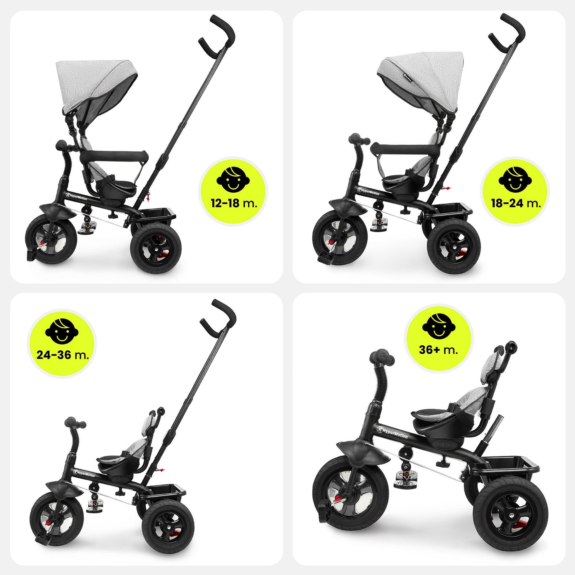 HyperMotion tricycle from 1 year with push bar - 3-in-1 children's vehicle for 1-4 years, up to 20 kg - with height-adjustable parent handle and push handlebar, Grey