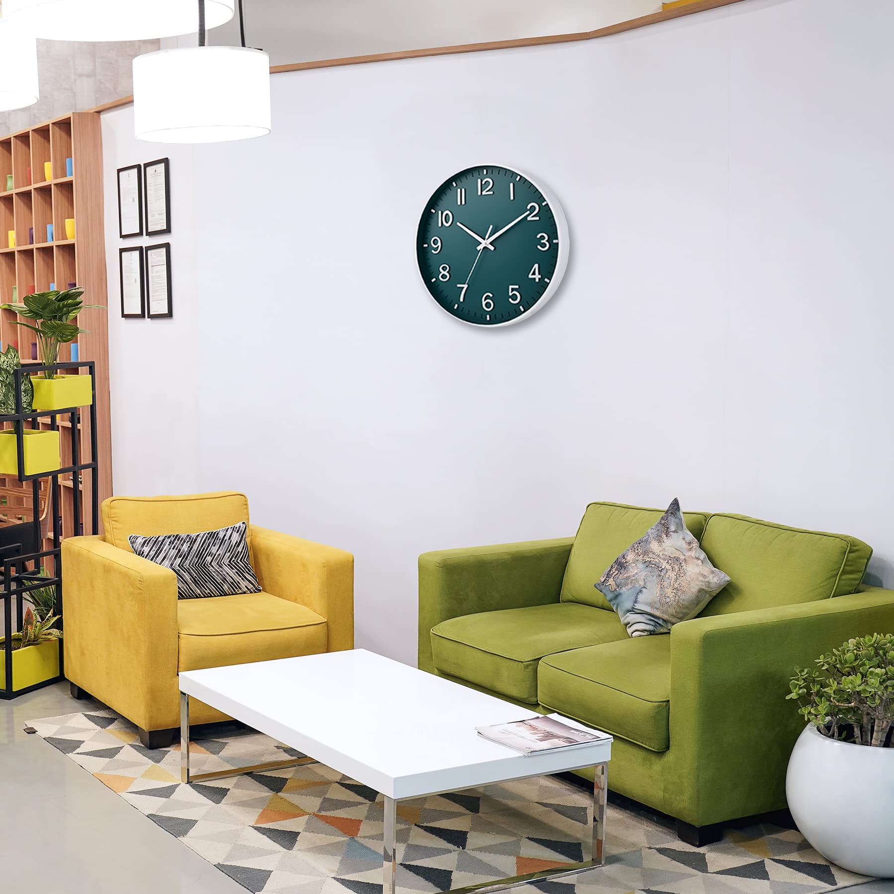 HZDHCLH 30cm Silent Wall Clock with Sweeping Second Hand, Arabic Numerals, No Ticking for Home Decoration Living Room, Kitchen, Office, Bedroom (Dark Green)