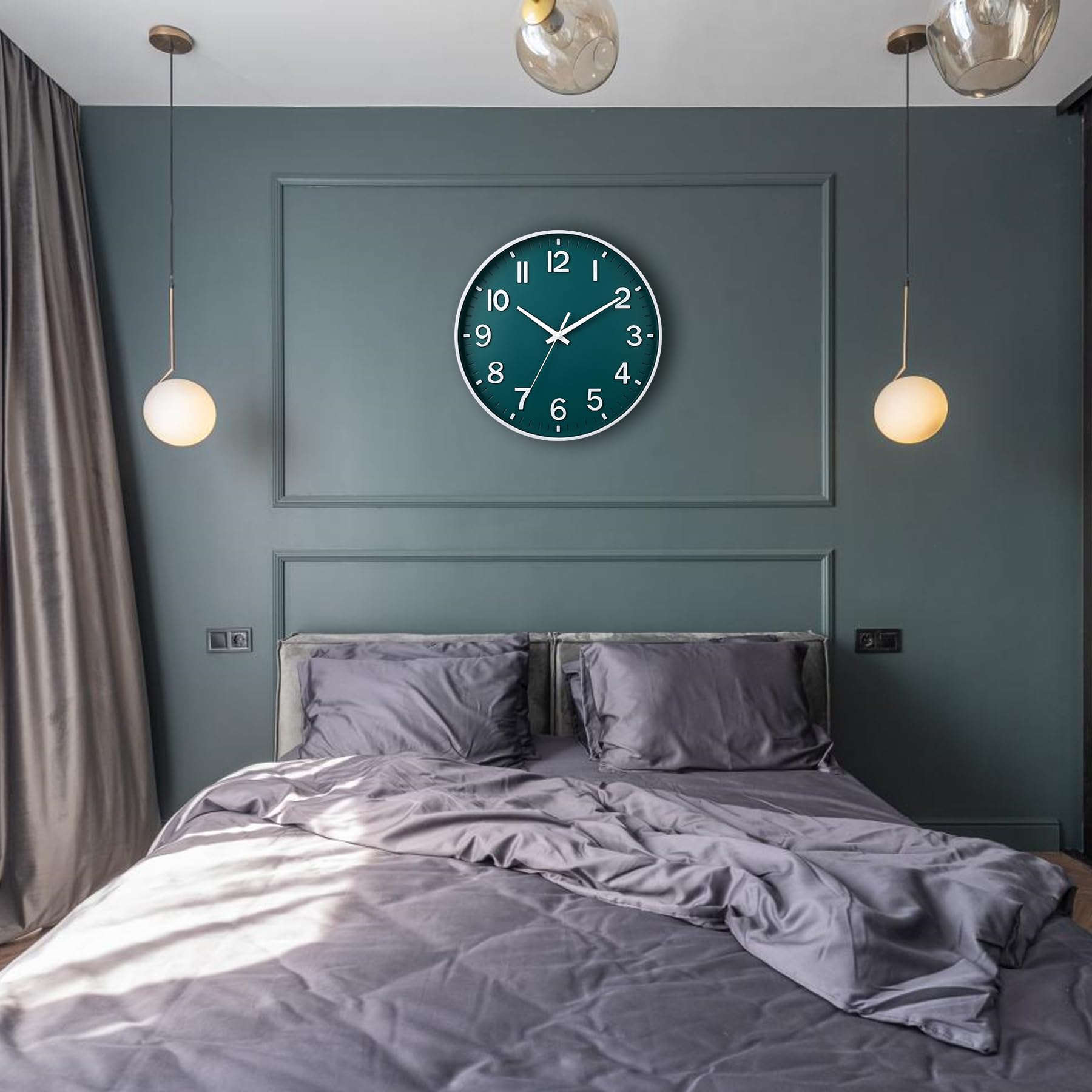 "No ticking noises——This silent wall clock does not produce any distracting ticking noises, creating a quiet and pleasant environment for sleeping and working.",