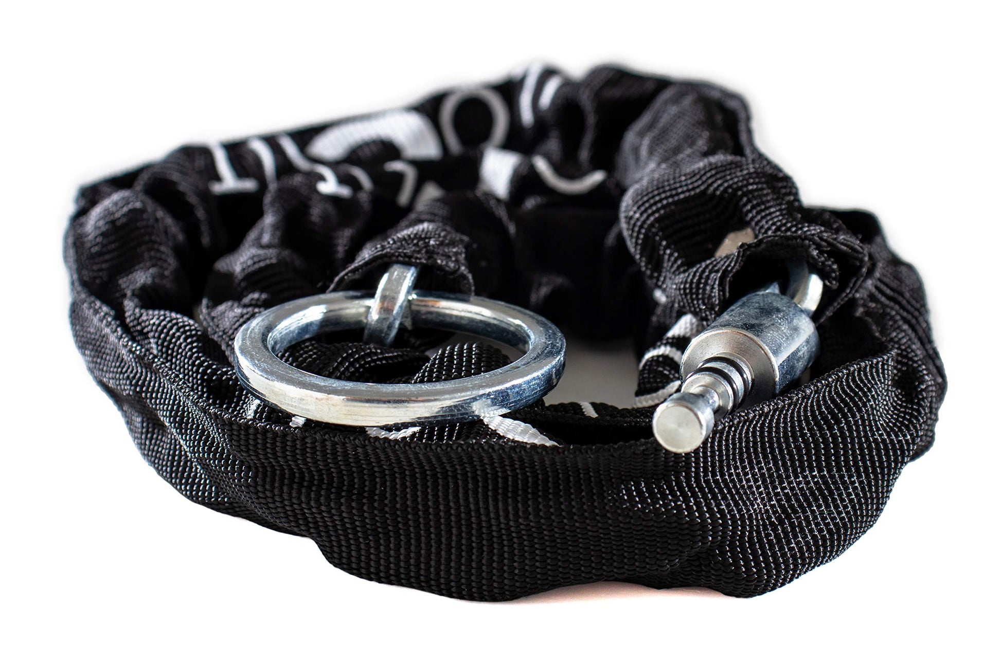 ["The plug chain can be easily connected with I LOCK IT and the bicycle can be securely locked to a fixed object","To do this, the chain is placed around the object, the plug is pulled through the opening at the other end of the chain, and then inserted into I LOCK IT","Once the bike lock is closed, the plug chain is locked with it","Material: high-alloy, hardened steel with black polyester protective cover"]
