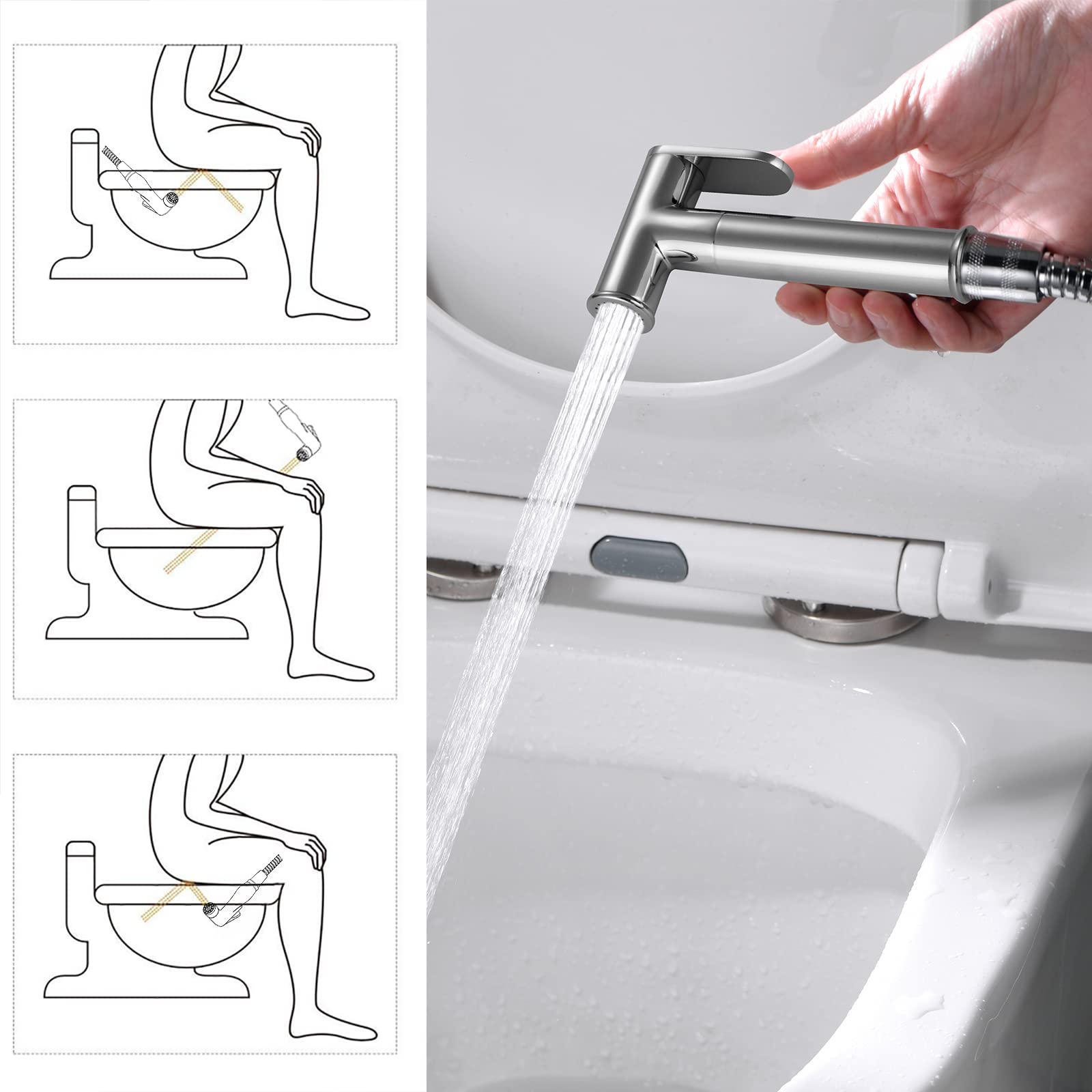 Ibergrif M22010 - Concealed WC-Bidet Hand Shower Set with shower and holder, hose, hot and cold water, chrome, silver