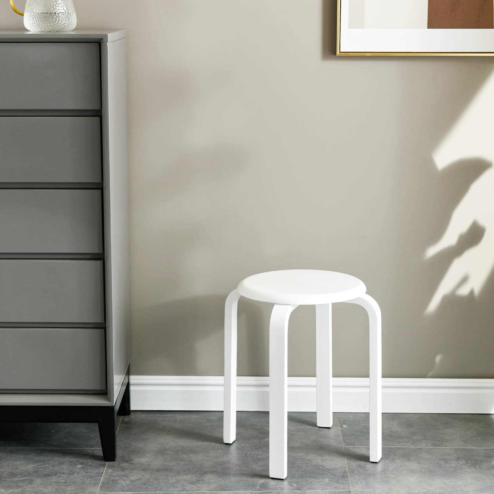 "STACKABLE DESIGN: Its compact shape and stackable design can help you save a lot of space for storage, especially for events, parties, or commercial use. Bentwood stools have strong load-bearing capacity. Size: 40 x 33 x 44 cm (15.75 x 12.99 x 17.32 inches)."
