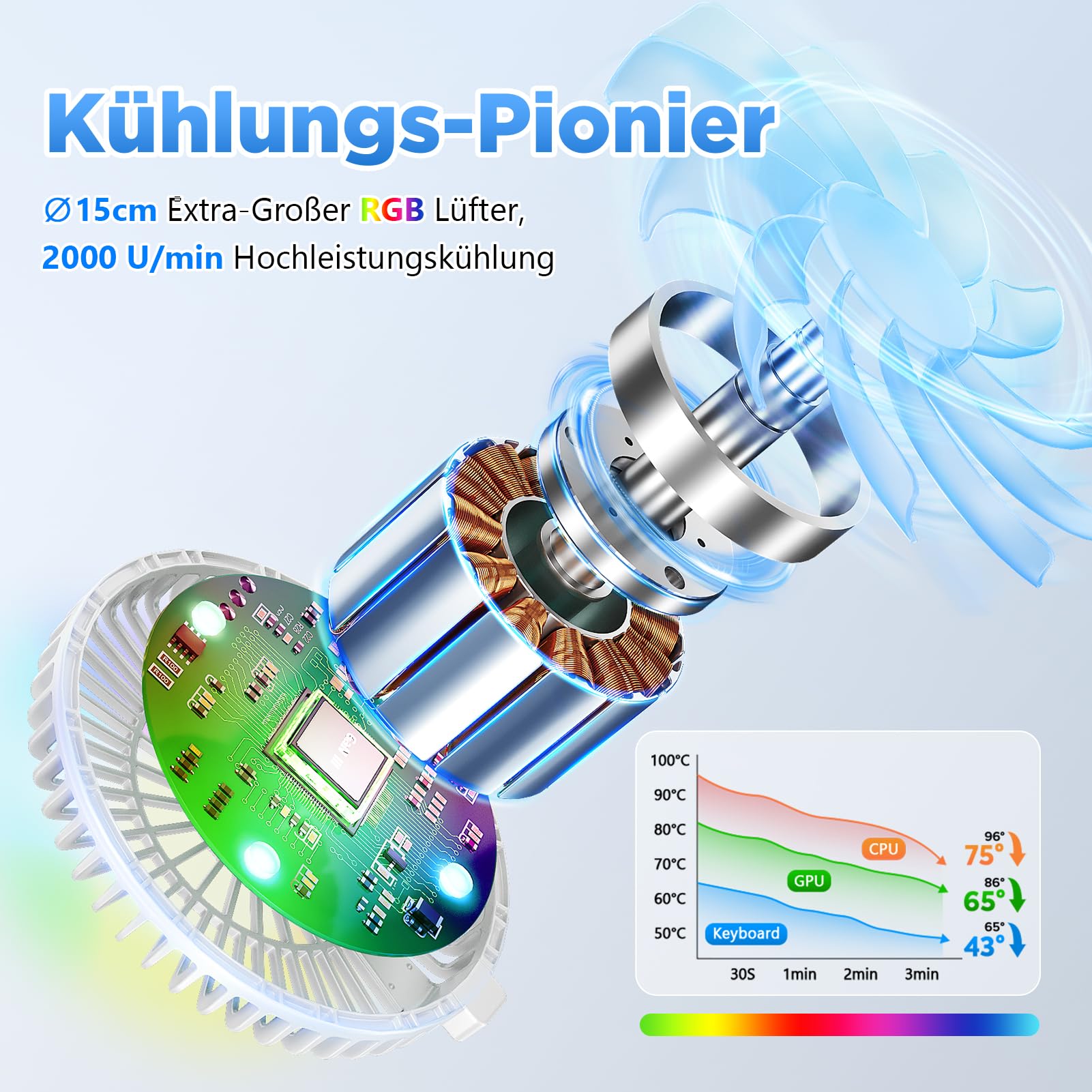 ["Dual function: Laptop stand and RGB Laptop Cooler 2-in-1. The Magnetic Laptop Fan with independent On/Off switch and USB-C to USB adapter, compatible with all laptops on the market with USB-C or USB-A ports.","Fully flexible: ICARE Laptop Stand with 360° rotating base + 180° adjustable arm. The notebook stand has a maximum adjustable height of 30cm to accommodate different heights and scenarios.","Efficient & Quiet: Large ∅15cm Laptop Fan with 2000 RPM for fast cooling, at 18dB, quieter than a library.(Please note that RGB cannot be turned off separately.)","Sturdy & Safe: Holds up to 10KG. The laptop holder is made of carbon steel to make it rock solid, with non-slip silicone on the plate and base to keep your laptop stable.","Multifunctional: ICARE laptop holder ideal for laptops (up to 16\"), tablets, and books. Compact foldable for backpacks."]