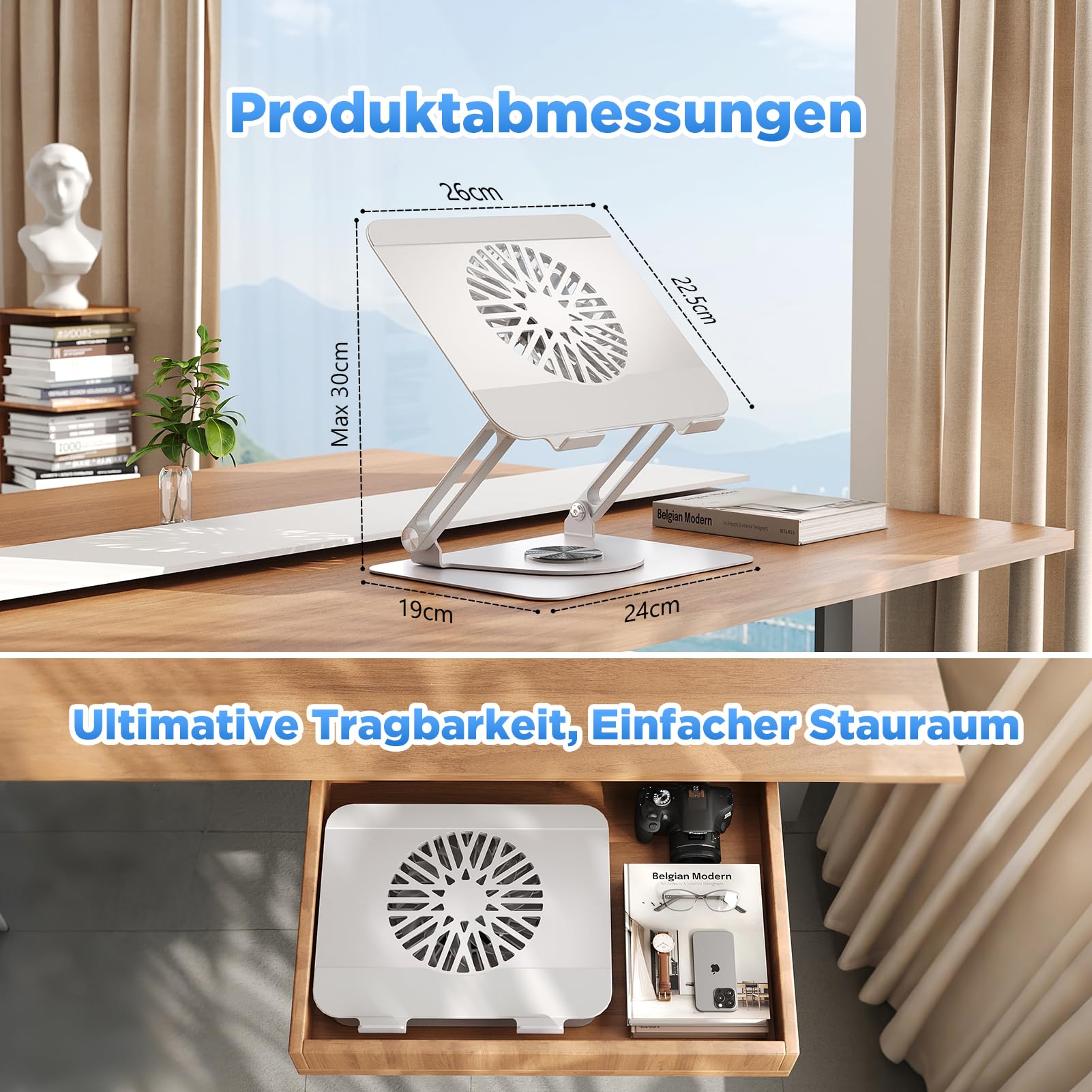 ICARE Laptop Stand with Magnetic RGB Laptop Cooler, 360° Rotatable, 10KG Weight Capacity and 18dB Quiet, Holder for Laptops and Tablets up to 16 inches