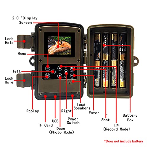 ["20 MP camera pixels and HD 1080P video resolution provide sharp and realistic images and videos that bring you into the world of wildlife and help you better understand their daily activities and behavior habits","32 infrared lights ensure clear night images and videos in the dark, capturing every fantastic moment at night without scaring away wildlife","The durable IP66 waterproof housing protects against moisture, dust, sand, and dirt, allowing our scouting camera to work in any weather condition","A trigger speed of 0.2 - 0.6 seconds means you are less likely to miss a picture of wildlife moving quickly across the field of view","This wildlife camera is widely used for garden monitoring, wildlife observation, deer scouting, outdoor hunting"]