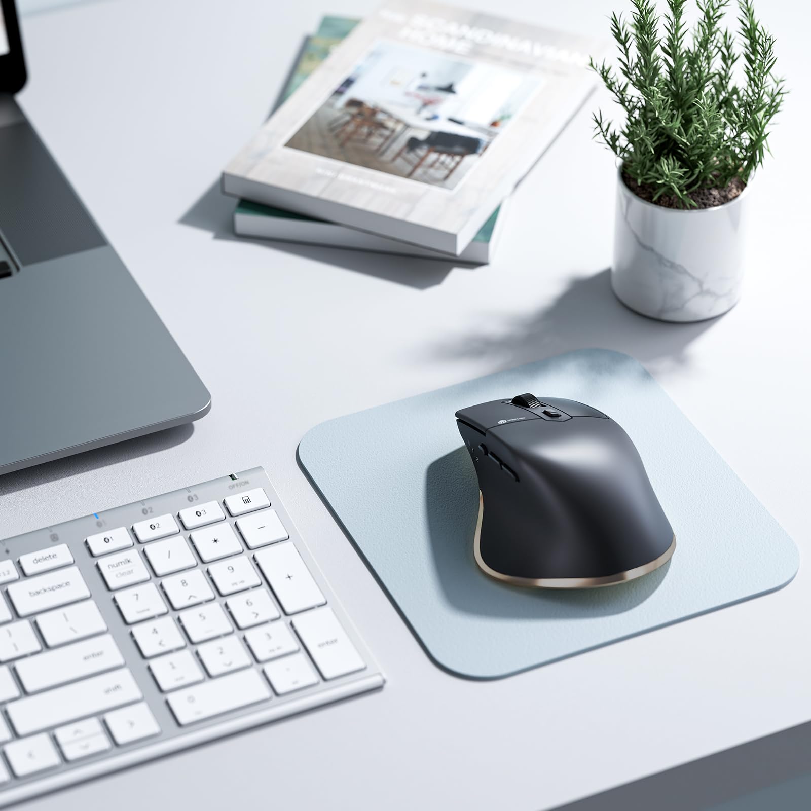 ["Triple Connectivity and Multi-Compatibility: Thanks to dual Bluetooth mode and 2.4G wireless technology, the wireless computer mouse can connect to up to 3 devices like Windows 7/8/10, Mac/iMac/iPhone/iPad/Tablet PC/Laptop/Smartphone simultaneously. Simply click on the connection button on the side, and you can freely switch between the 3 devices.",