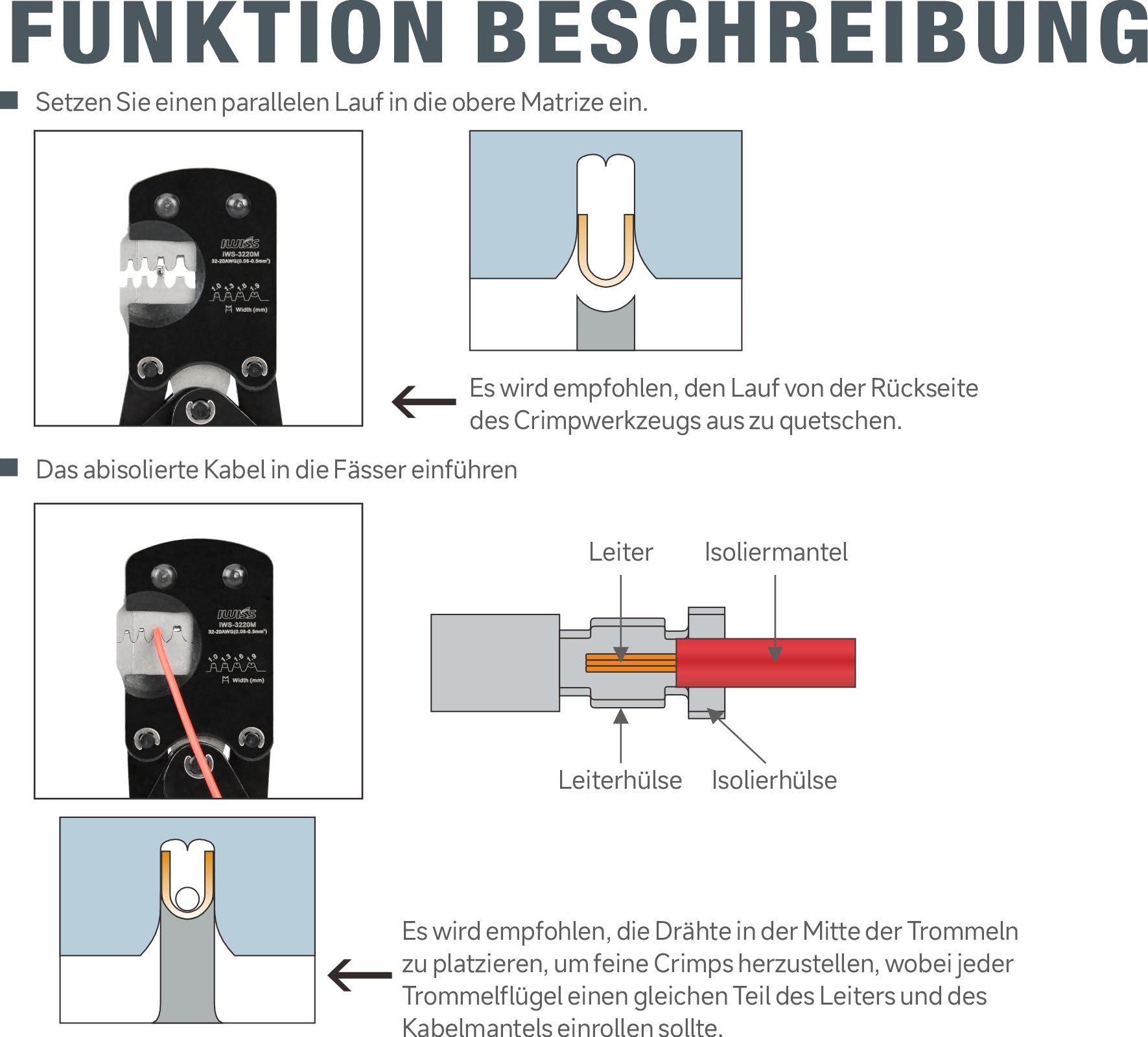 iCrimp IWS-3220M Crimping Tool for 0.03-0.5mm² wire ferrules, Micro connector pin crimping tool Ratchet crimper for D-Sub, open barrel Molex, JST, and JAE.