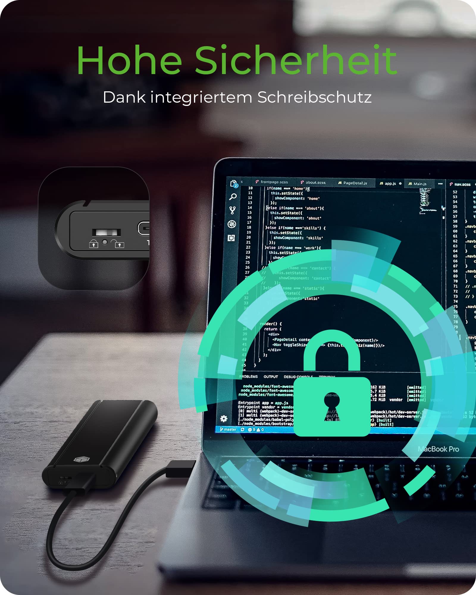 "PROTECTED: The enclosure comes with integrated write protection, safeguarding your data from accidental loss. Write protection can be easily activated and deactivated by switch"]