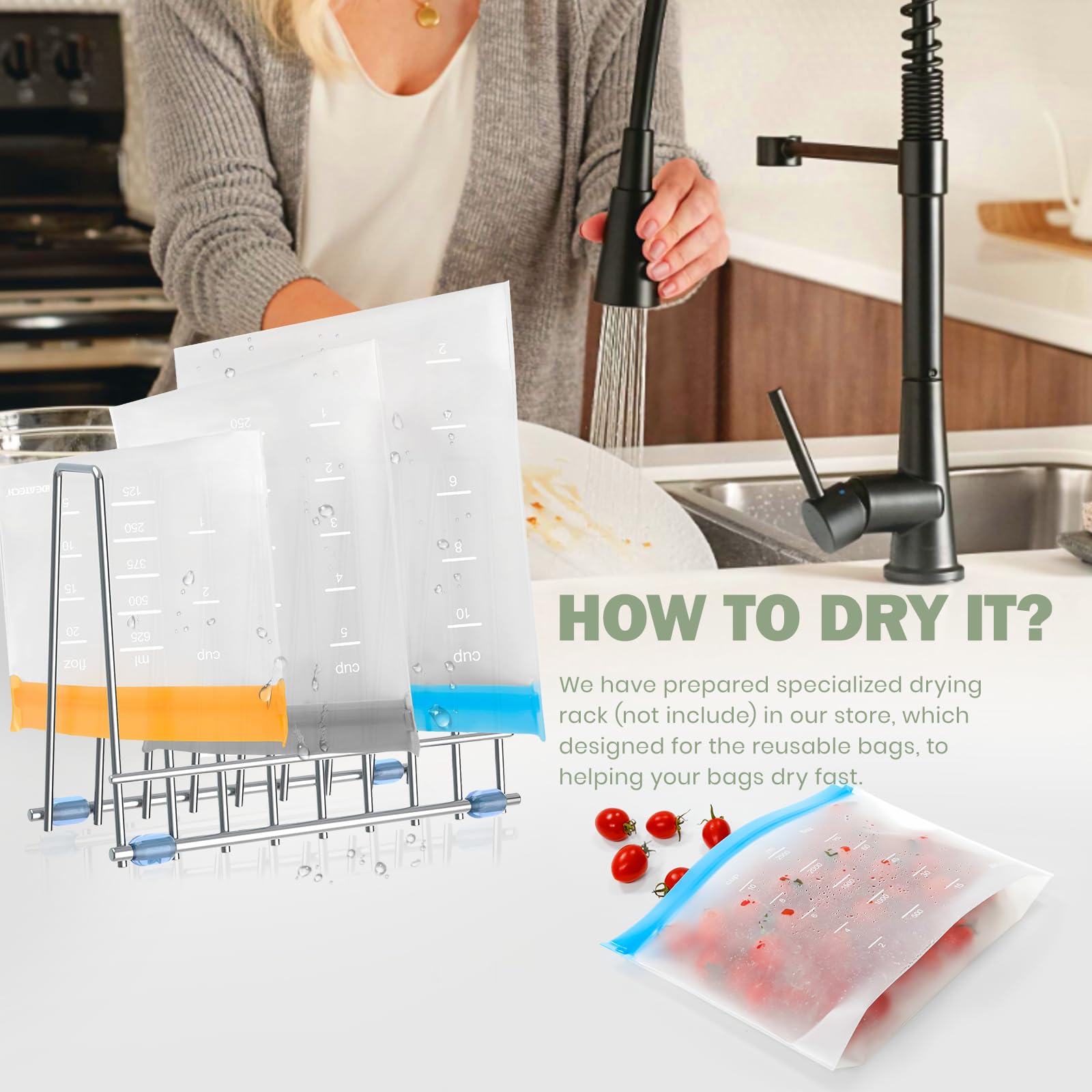 SATISFACTION GUARANTEE: The reusable zip bag stands up for food can be easily stored in the refrigerator but can withstand a maximum temperature of 158°F, it is not suitable for microwaves, ovens, and dishwashers. IDEATECH insists on selling high-quality products so you can buy with confidence! If you have any questions, please feel free to contact us. We will serve you wholeheartedly."