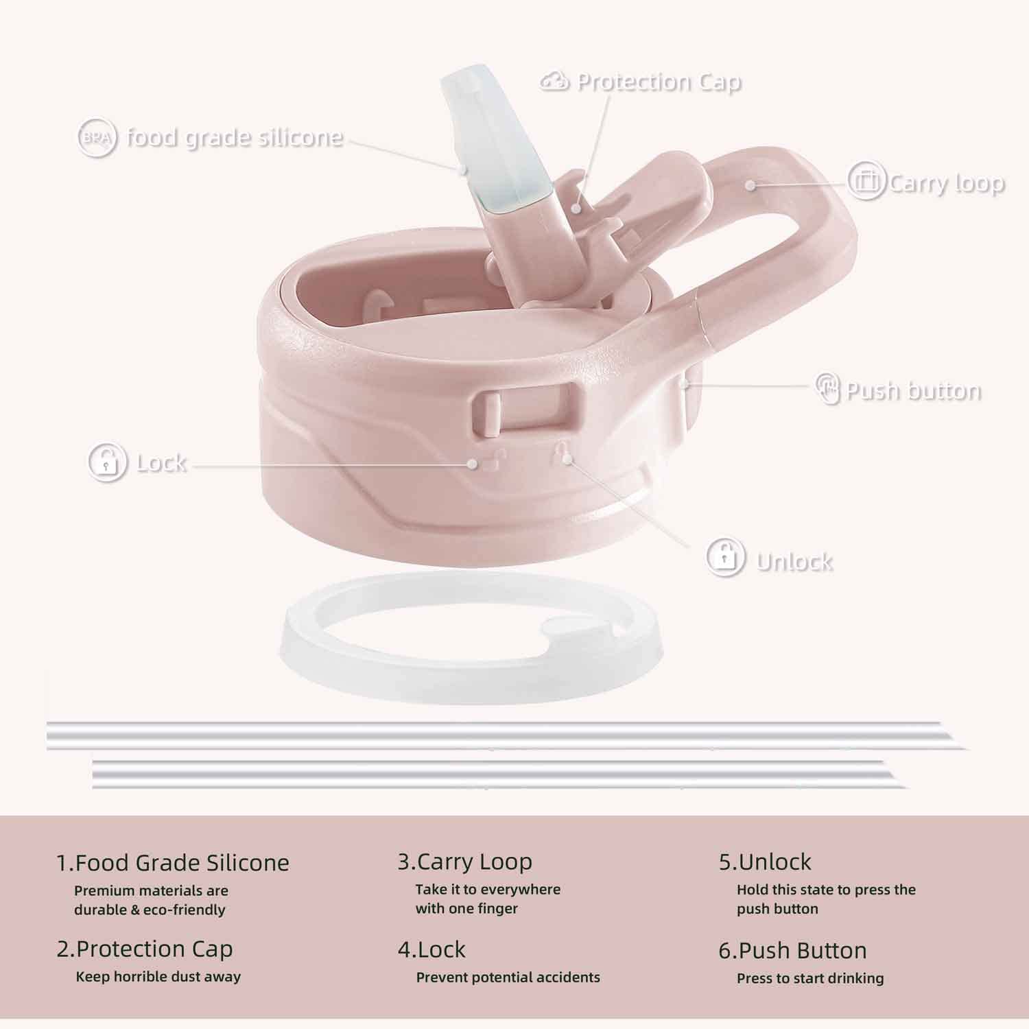 ["Vacuum insulation: The Ideus children's water bottle is made of SUS304 18/8 stainless steel, 100% BPA-free. Advanced vacuum double-wall insulation technology keeps beverages temperature for up to 12 hours.", "Easy to use: The children's water bottles come with 2 types of lids - One-touch pop-up straw with safety lock and a pour spout lid. Our toddler cup is lightweight and easy to carry, keeping your child hydrated wherever they go.", "Durable and leak-proof: The Ideus water bottle for children has a removable silicone bottom pad that protects the bottle from damage. This children's water bottle is 100% leak-proof when the lid is closed. Ensures no spills or mess when your child is on the go.", "Easy to clean: The stainless steel water bottle for children is dishwasher safe. The straw and silicone ring can be removed and cleaned separately. We work with parents around the world to protect children's drinking water health.", "Reliable customer service: If problems occur with the water bottle after purchase. Please contact us immediately and we will solve the problem for you."]
