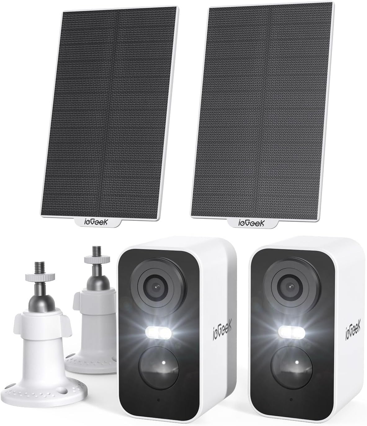 ieGeek 2K (Type-C) Outdoor Security Camera with Solar Panels, 5200mAh Battery Wireless Camera, WiFi Outdoor Surveillance Camera, PIR Motion Detection, 2-Way Audio, Alexa Compatible, Black, 2Pcs, IP65-White