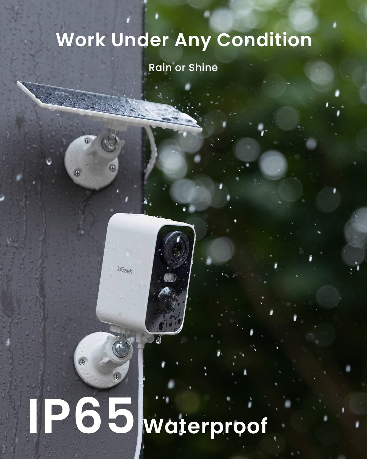 ["📸【2K-HD Quality & 10M Color Night Vision】 The ieGeek outdoor surveillance camera features 2K-HD quality (resolution 2304 * 1296) and a 130° wide angle. After installation, you can enjoy high-resolution, wide-ranging surveillance images. Thanks to the improvement of surveillance technology, our surveillance camera also has a color night vision function. At night, you can observe the wind and grass within 10 meters through surveillance.","🔋【5200 mAh Battery & Solar Panel】 The outdoor solar surveillance camera has a rechargeable 5200 mAH battery that can be used repeatedly, and we also have a solar charging panel. The camera can be in standby mode for 6 months and work for 40-60 days. Once the solar panel is installed, you no longer have to worry about battery life and charging cables, it is a 100% wireless outdoor surveillance camera.","🏃♂️【PIR Person Detection & Custom Detection Range】 This camera features PIR person detection function. While ensuring detection effectiveness, it also supports setting a custom detection range. You can set any surveillance screen area as an important detection area, and achieve a detection accuracy of up to 99%. (with IP65 waterproof, no fear of bad weather).","🔊【Two-Way Audio & Multi-User Sharing】 After installing a microphone in this outdoor wifi camera, you can speak directly to the person in front of the outdoor surveillance camera, whether it's a courier or a pet, you can speak directly and you won't miss any "visits". The camera also supports multi-user sharing. With your permission, additional users can view the video screen.","📼【Compatible with Alexa & Cloud Storage/Memory Card】 This Wireless Surveillance Camera is compatible with Alexa's Smart Voice function, making it easy to become part of the "Smart Home". In addition, the camera supports cloud storage and memory card, and you can choose any method to store videos. (Note: Does not support 5GHz WiFi & A subscription is required for pet and object detection)."]