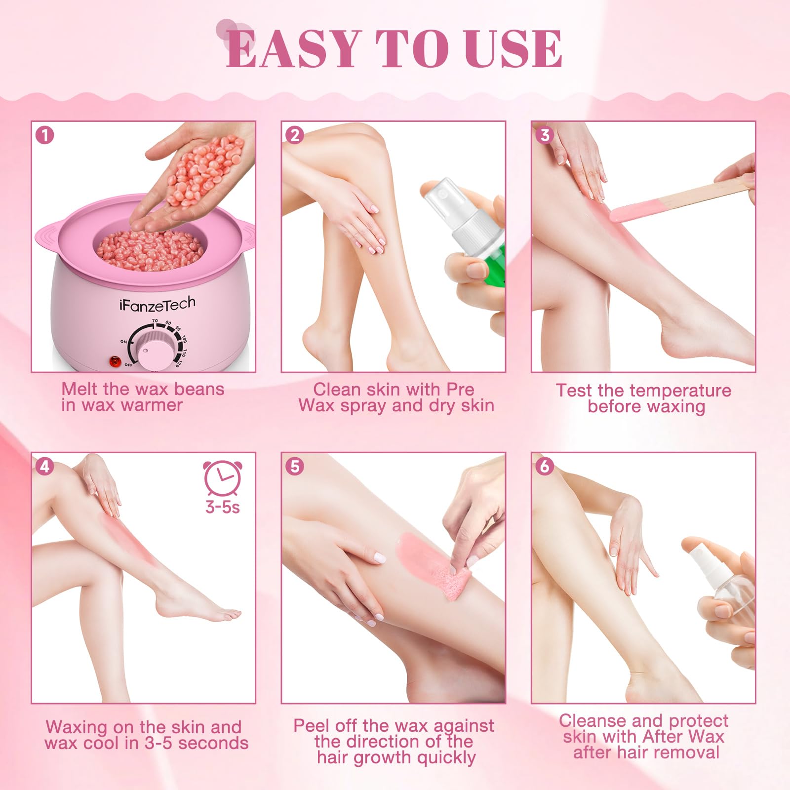 iFanzeTech Wax Machine Waxing Set for Women: Wax Hair Removal - Wax Warmer Waxing Kit for hair removal with 5 packs of Waxing Beads, Wax Machine Hot Waxing Kit Set for Home Salon