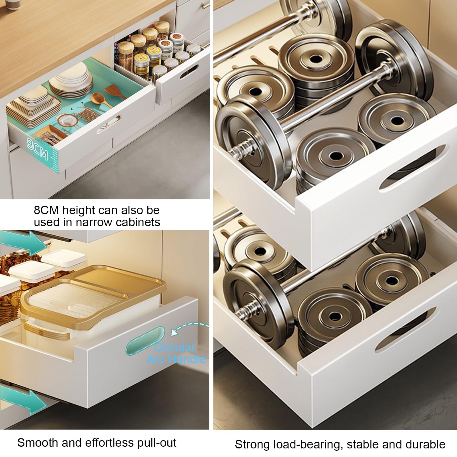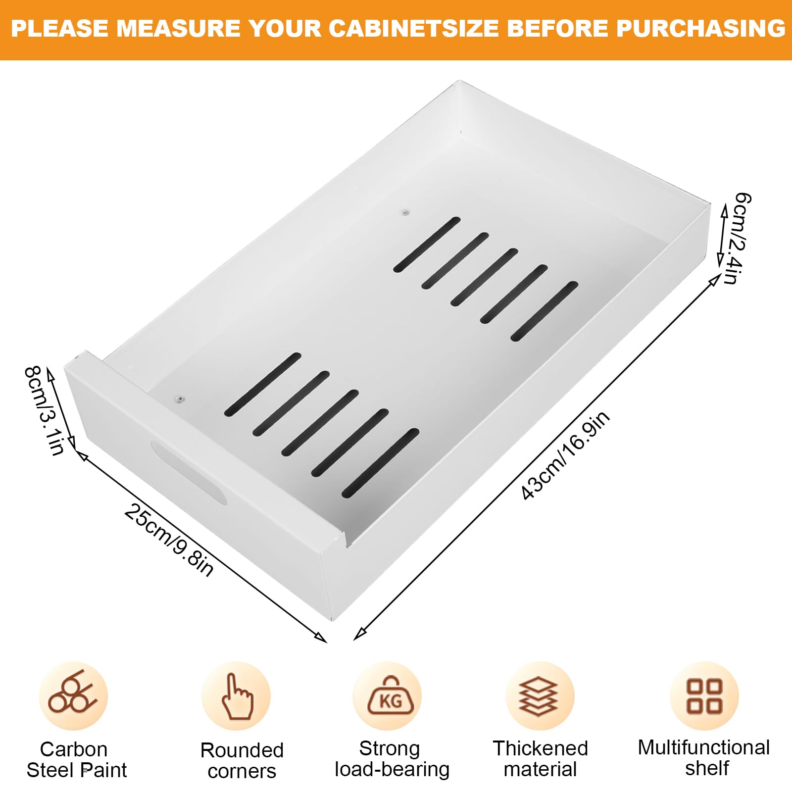 "✅【Simple Installation】Our extendable cabinet organizer is different from other extendable drawers. It requires no drilling or nailing. Simply follow the instructions, stick the drawer to the cabinet, and install it within 1 minute.