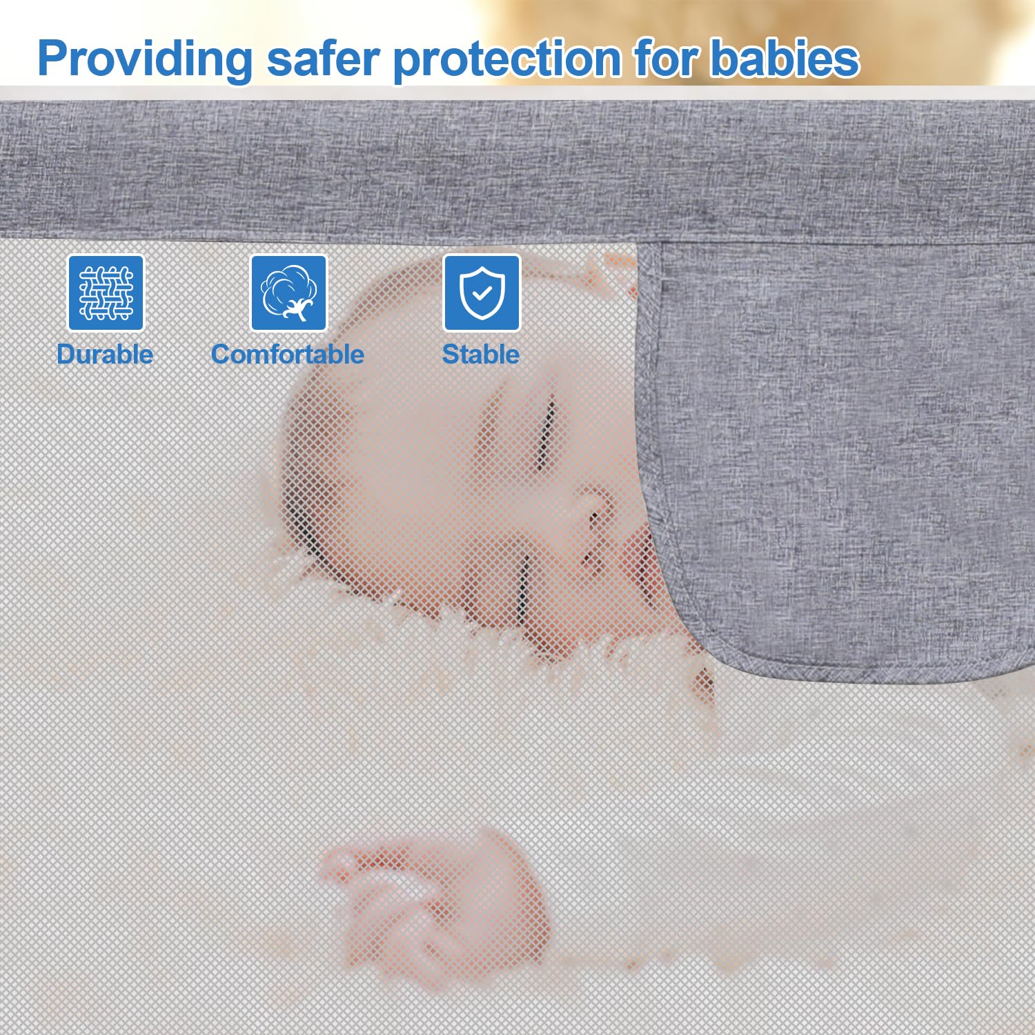 "Easy to Clean】The bed rail mesh cover is washable and reusable, so you can wash it whenever you want. It can be disassembled when not in use to save space. The entire bed rail can be folded down and secured under the mattress for easy access.",
