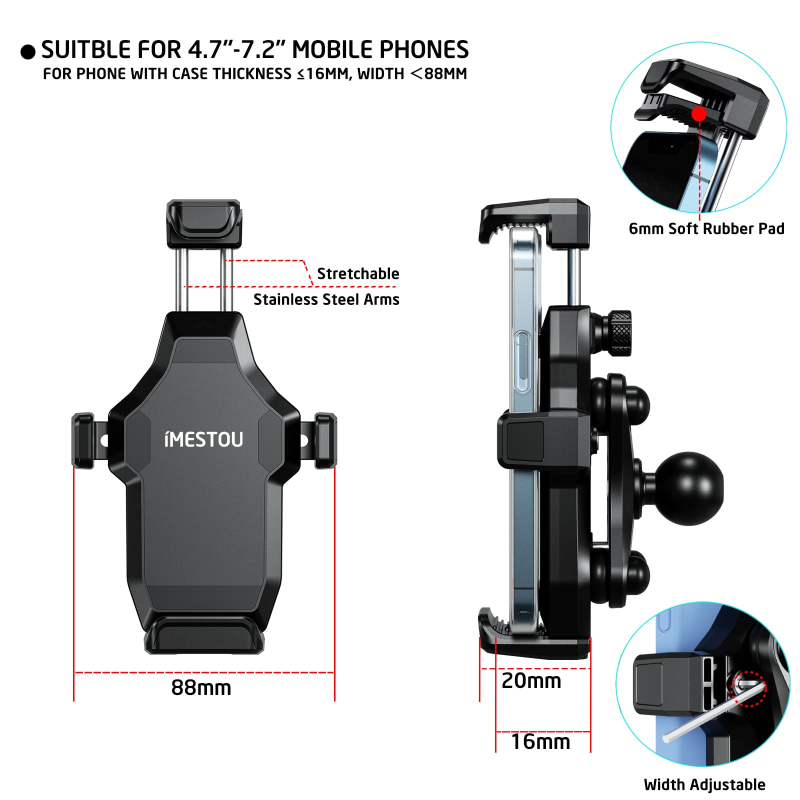 iMESTOU Anti-Vibration Motorcycle Phone Mount, 1 inch Ball Handlebar Phone Holder, Perfect for High-Speed Cycling, 360° Rotatable, Universal for 4.7"-7.2" Phones