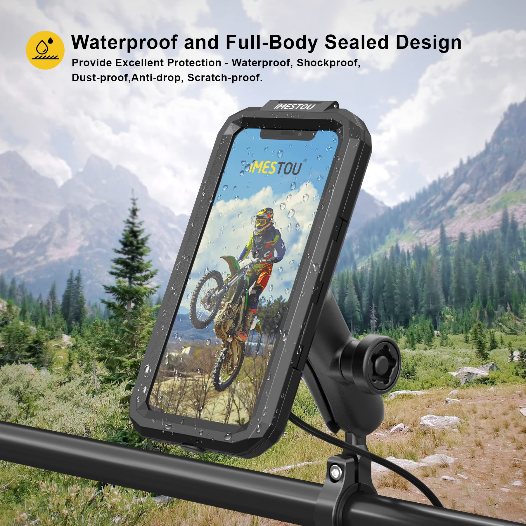 iMESTOU waterproof motorcycle phone mount bike phone holder 1" ball handlebar stem mobile holder anti-theft 720° rotation aluminum base for 5.5"-6.8" cellphones (L)