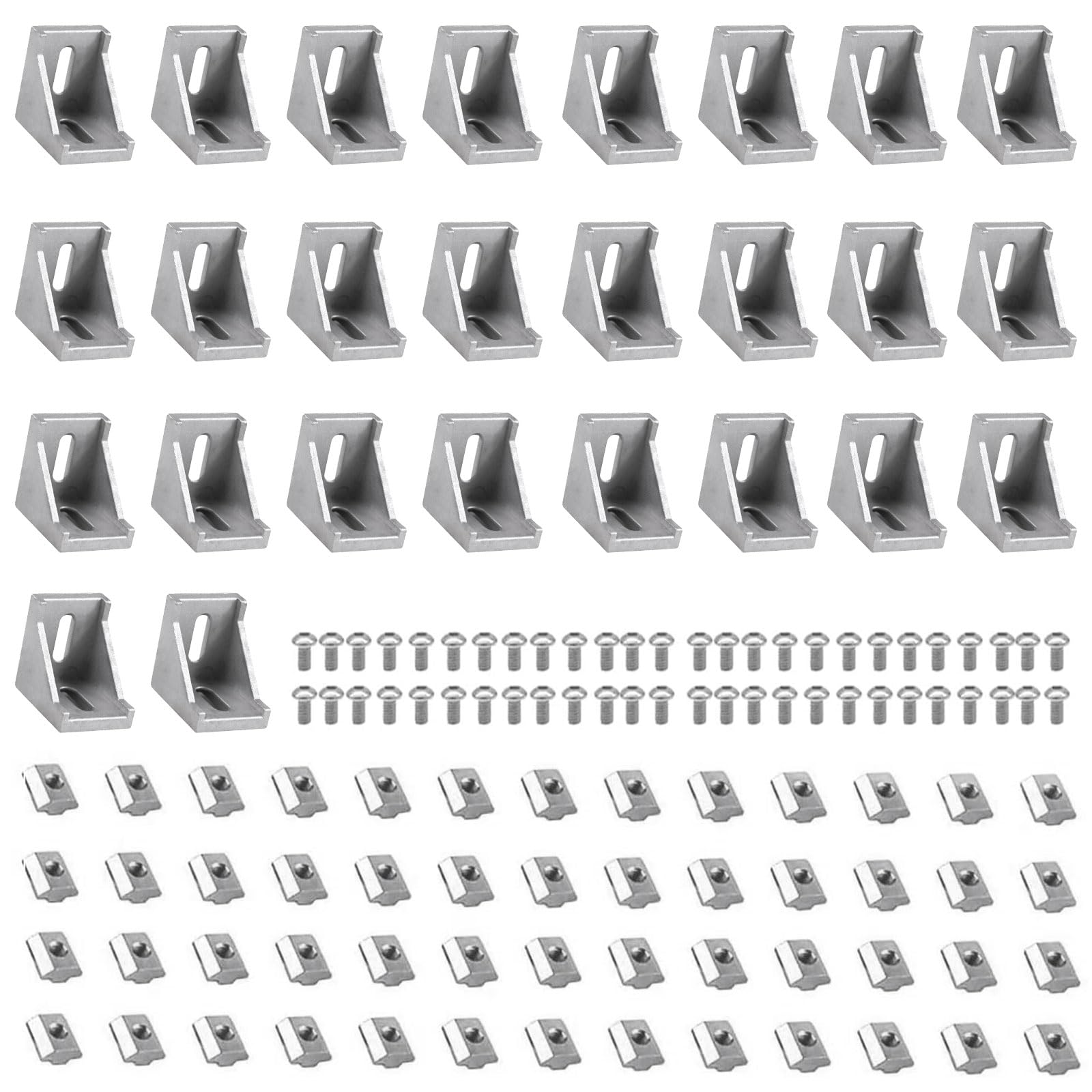 ["Package Include: 26 pieces 30x30 Aluminum Profile Aluminum Angle with Screws and Nuts","Size of this Corner Connector 30x30: 35x35x28mm","Material of Aluminum Angle 30x30: Aluminum alloy","This aluminum angle 30x30 is compatible with Aluminum Profile 30x30","Find more aluminum profile and aluminum profile accessories from iMetrx"]