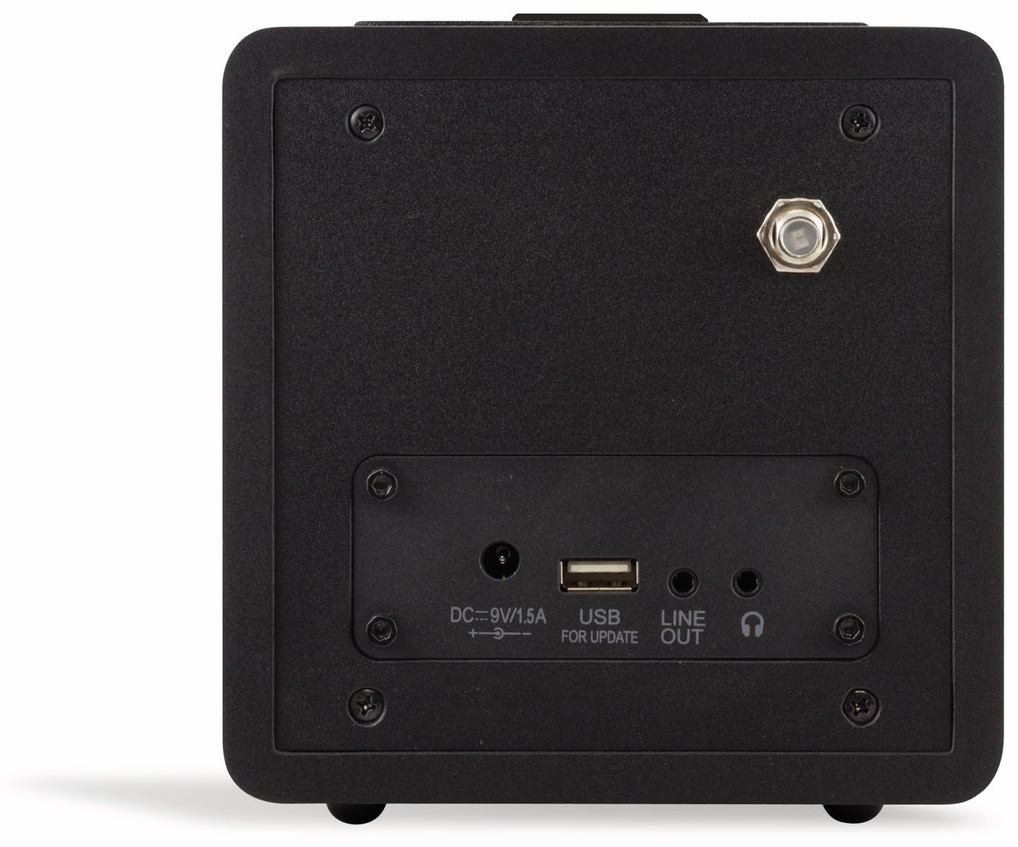"Compact radio alarm clock in stylish cube design - receives digital DAB+ and analog FM radio