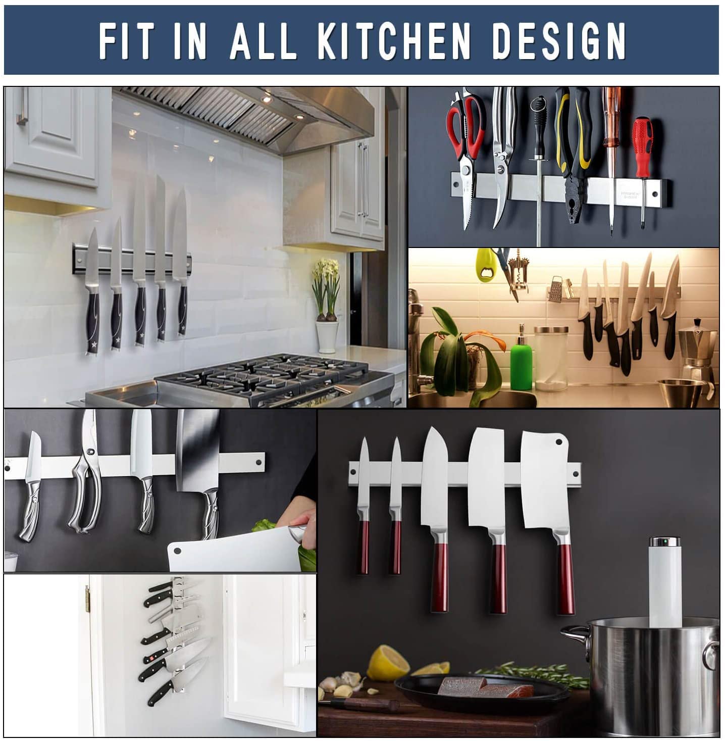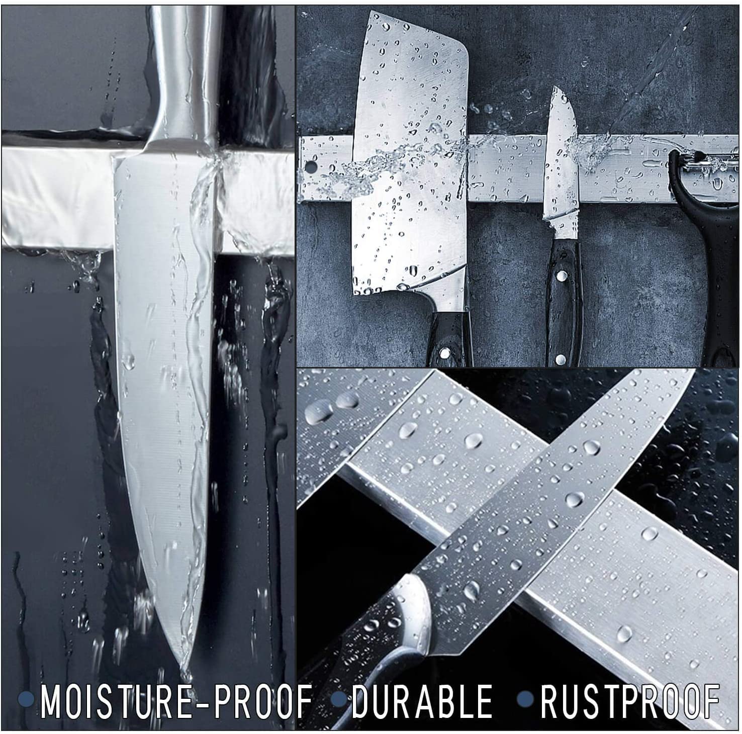 ["\"🧲【Knife Holder】AidSci Self-Adhesive Magnetic Knife Holder is made of high-quality stainless steel and features a smooth surface for long-lasting durability. Protect your high-quality knives from scratches and damage with our knife holder. Please note that this knife holder does not come with knives.\"",