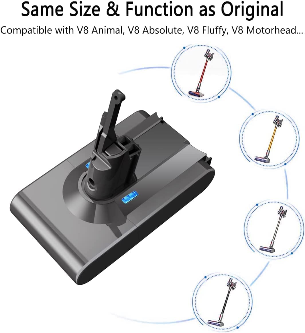 "🔋 Compatible with Dyson Animal V8 Vacuum Series, Dyson V8 Absolute, Dyson V8 Fluffy, Dyson V8 Animal, etc. Dyson V8 SV10 967834-02 96783402 vacuum, Dyson V8 Animal Cordless vacuum",