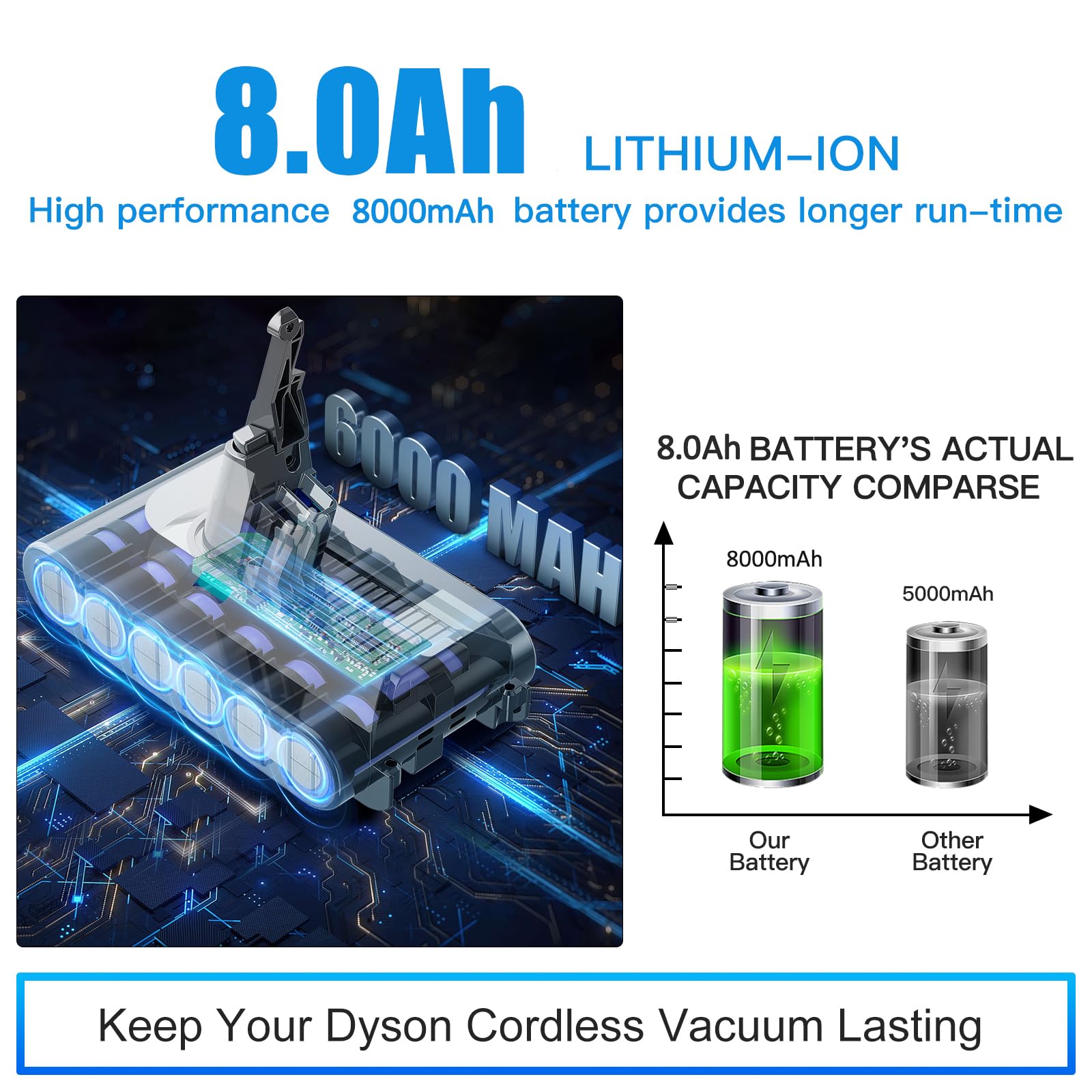 Improved V8 8.0Ah SV10 battery 215681 replacement compatible with Dyson V8 Animal/Absolute/Motorhead/Fluffy/SV10 handheld vacuum Li-Ion 967834 05
