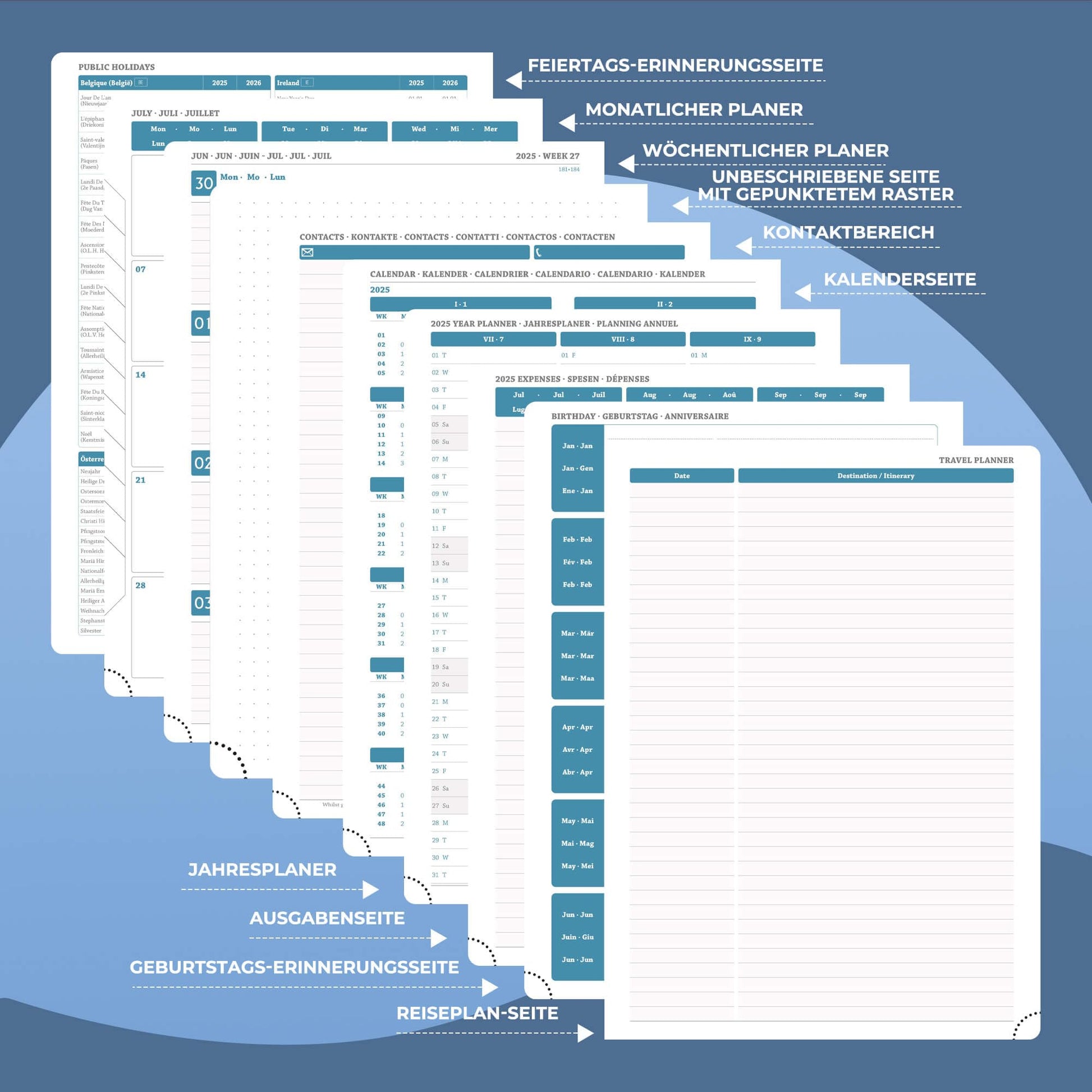 ["Monthly calendar: For July 2025 to December 2026. It has a double page for each week, allowing you to have an overview without having to flip pages. The weekly planner page provides space for organizing daily tasks, priorities management, and recording activities; the left side of the monthly plan marks important dates, and the right side plans special tasks.","Great material for weekly planners: This planner for the years 2025-2026 is made of FSC 80 GSM thick paper, resistant to ink bleeding and daily wear. It allows smooth writing with markers and protects the eyes with its ivory white pages. The soft vegan leather cover and reinforced lay-flat binding make this calendar the ideal companion for professionals, students, and families.","Detailed design: (Easy Find) The monthly tabs on the side of the academic planner can quickly locate the current date; the tear-off design and bookmark rope make it easy to flip through, mark, and return to important pages in the small planner. (Magic Pocket) The last page of the 2026 college planner has an extended inner pocket, providing a small space for storing cards.","Personalized life system: Weekly plan, monthly and yearly planner pages, holiday reminders throughout the year, space for birthday entries of relatives and friends; with the dot matrix note area, you can capture inspirations and plans; at the same time, the weekly planner provides travel planning and expense management for bills.","Compatible planner 2026: Customizable to all lifestyles and roles. Professionals track workflow and conference logistics; school planners 2025-2026 academic dates, assessments, and extracurricular activities; households manage holidays and family activities"]
