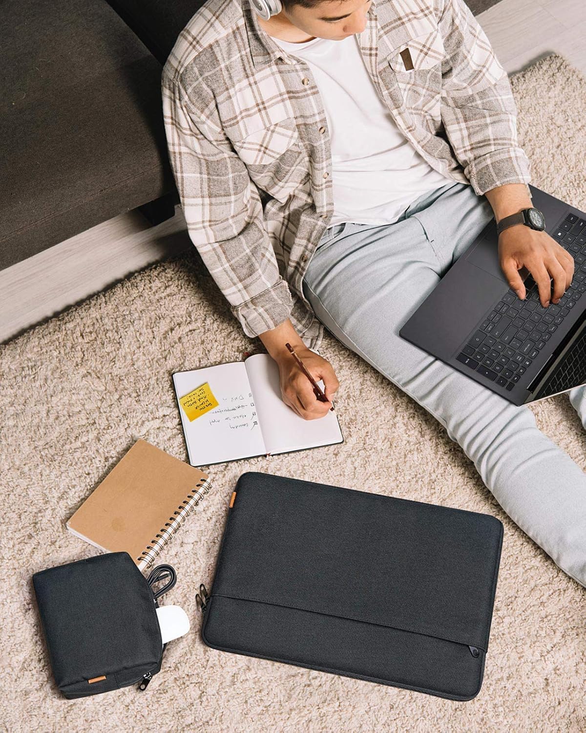 ["Dimensions: 15.6 x 10.8 x 1.4 inches (outside), 14.8 x 10.2 x 1.2 inches (inside). Compatible with most 15-15.6 inch laptops, notebook sleeve protective case", "Accessory pouch (outside 7.5 x 6.1 x 2.4 inches): For carrying charger, mouse, power bank, USB cable, etc.", "Large storage space: Front pocket for flat items like notepad or pad. Along with accessory pouch, plenty of room for various items", "Strong protection: Interior lined with soft flannel to protect laptop from scratches. Exterior made of splash-proof polyester. Bag sewn with 5 layers for all-around protection", "Double zipper: Main compartment closed with double zipper for smooth and convenient opening"]