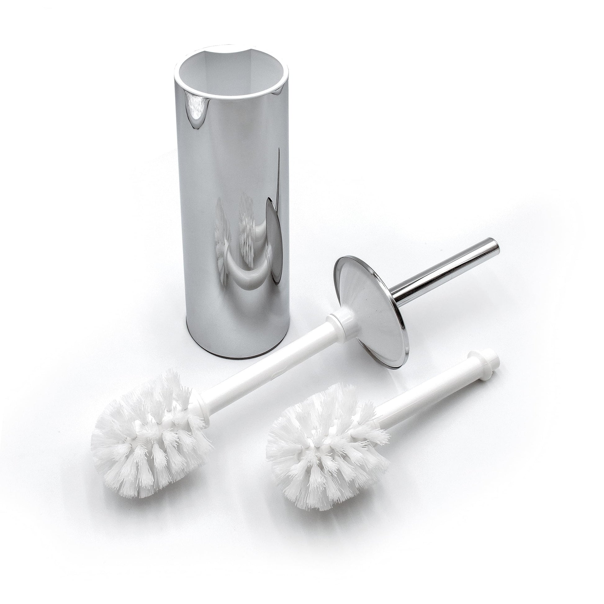 INDA - Bathroom accessories, My Love series, brush holder for wall or floor, replacement brush included, brass, chrome/white, 9 x 9 x 40 cm, SKU: AV014ACR