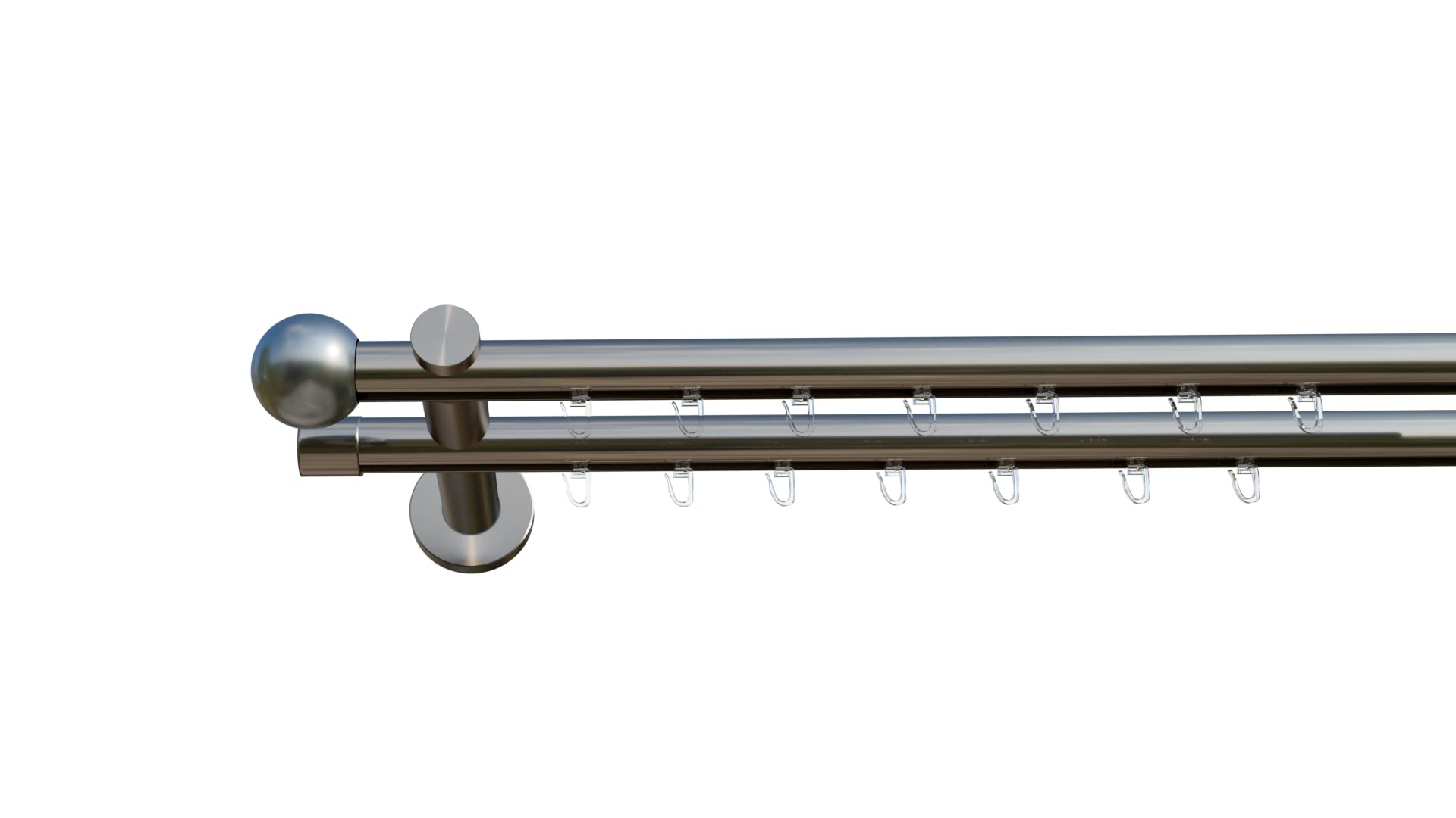 inDeco COLUMBES, curtain rod with inner track Ø 16 mm made to measure, 2-rail, stainless steel look, complete set with accessories.