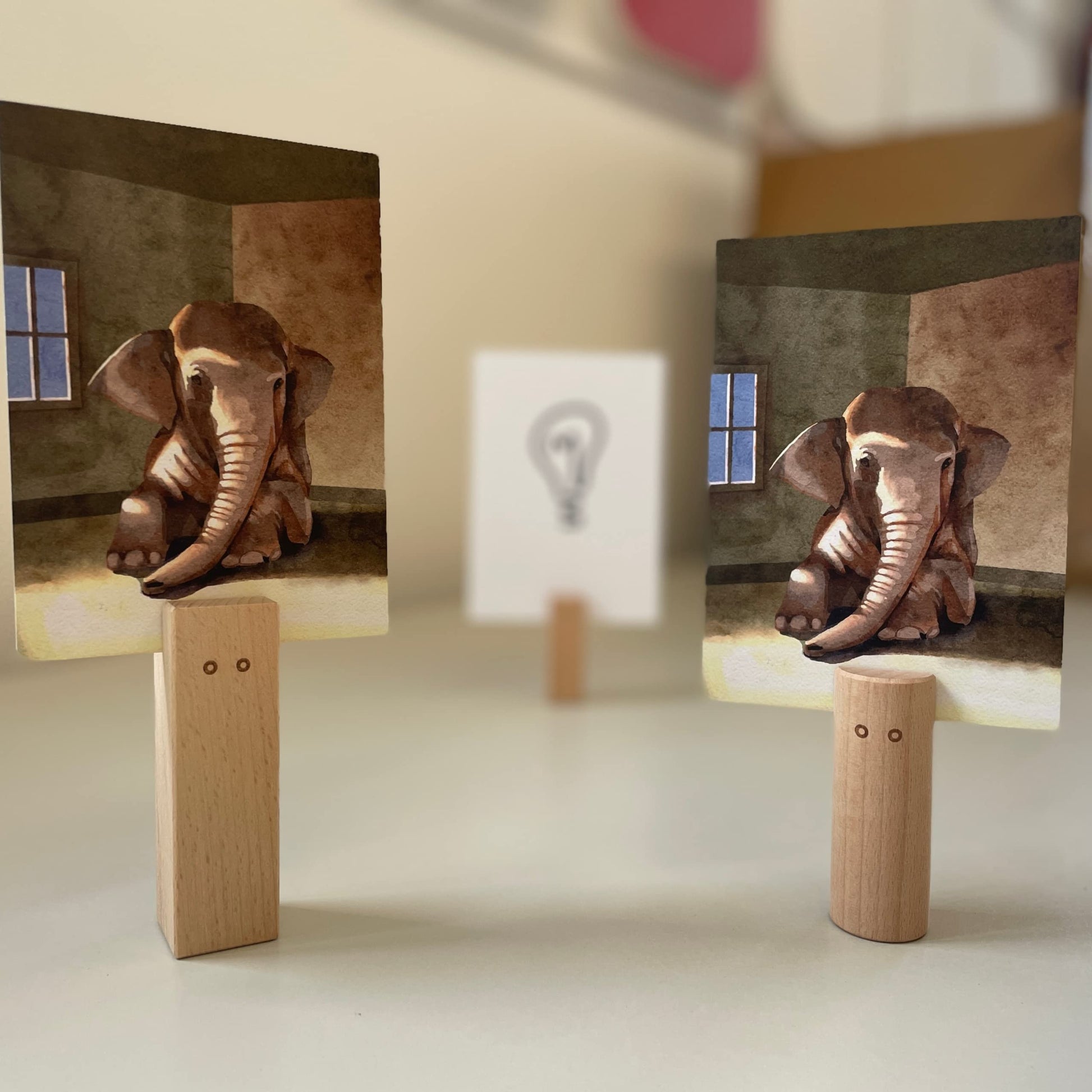 "Versatile: the systemic figures have laser-cut eyes with a neutral expression. There is neither a smile nor sadness recognizable. The slits serve as card holders for the included cards or coaching cards as well as photos."